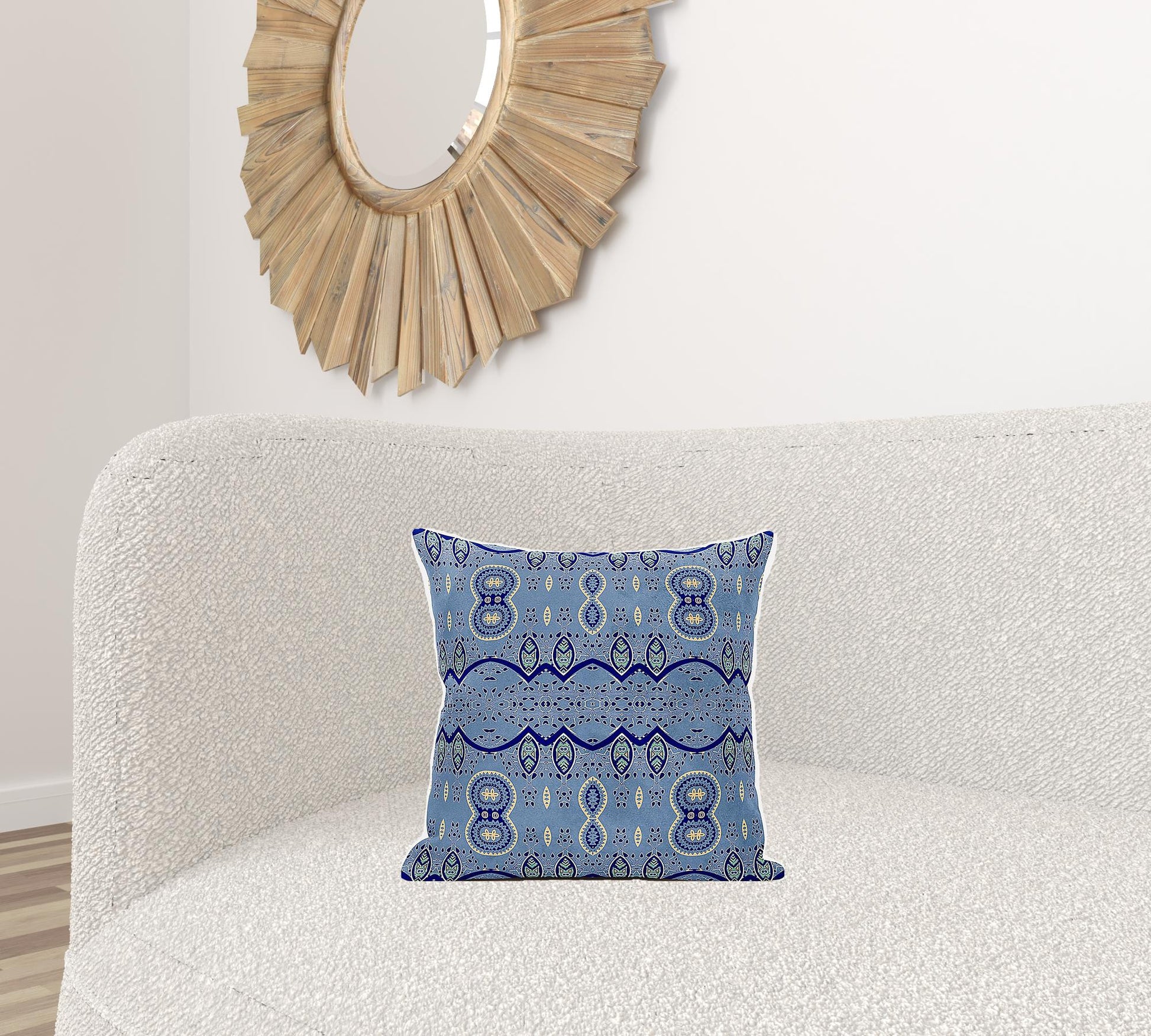 16" X 16" Blue and Yellow Broadcloth Paisley Zippered Pillow