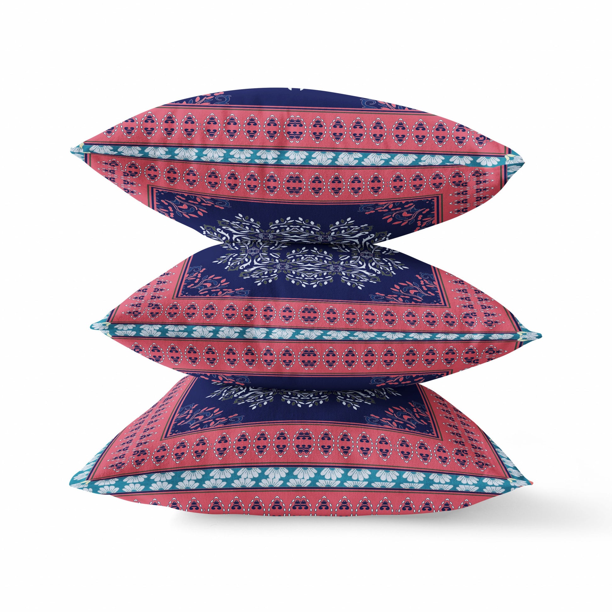 The perfect complement to your sofa, favorite chair, or bed, this 16" x 16" dark blue red geometric blown seam suede throw pillow is a great decorative accent. For anyone that loves to decorate or accent their space with color and texture. Decorative pillows are a great way to change up the look and feel of your space easily and quickly. 5" H x 16" W x 16" D