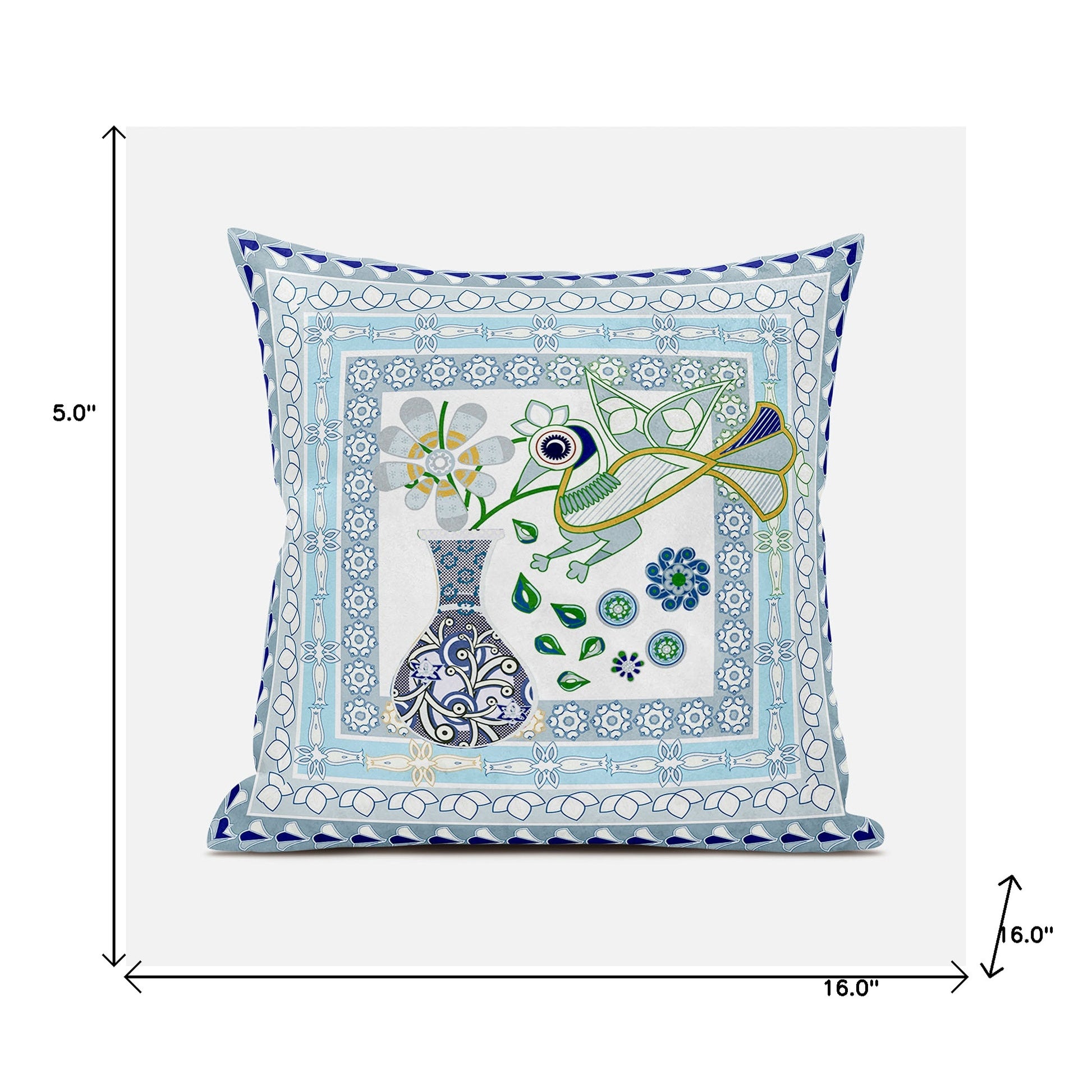 16" X 16" Gray and White Peacock Broadcloth Floral Zippered Pillow