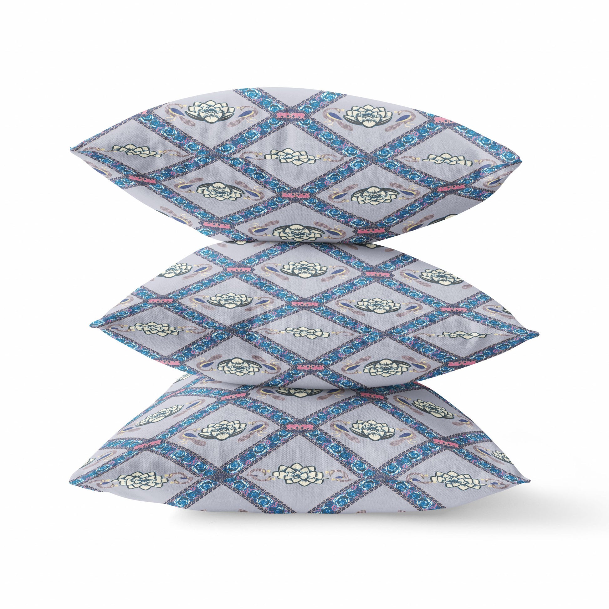 Keywords | seam suede throw pillow, blown seam suede throw pillow, pink lotus floral blown seam, 16" X 16" gray sea blue, pink lotus floral blown |