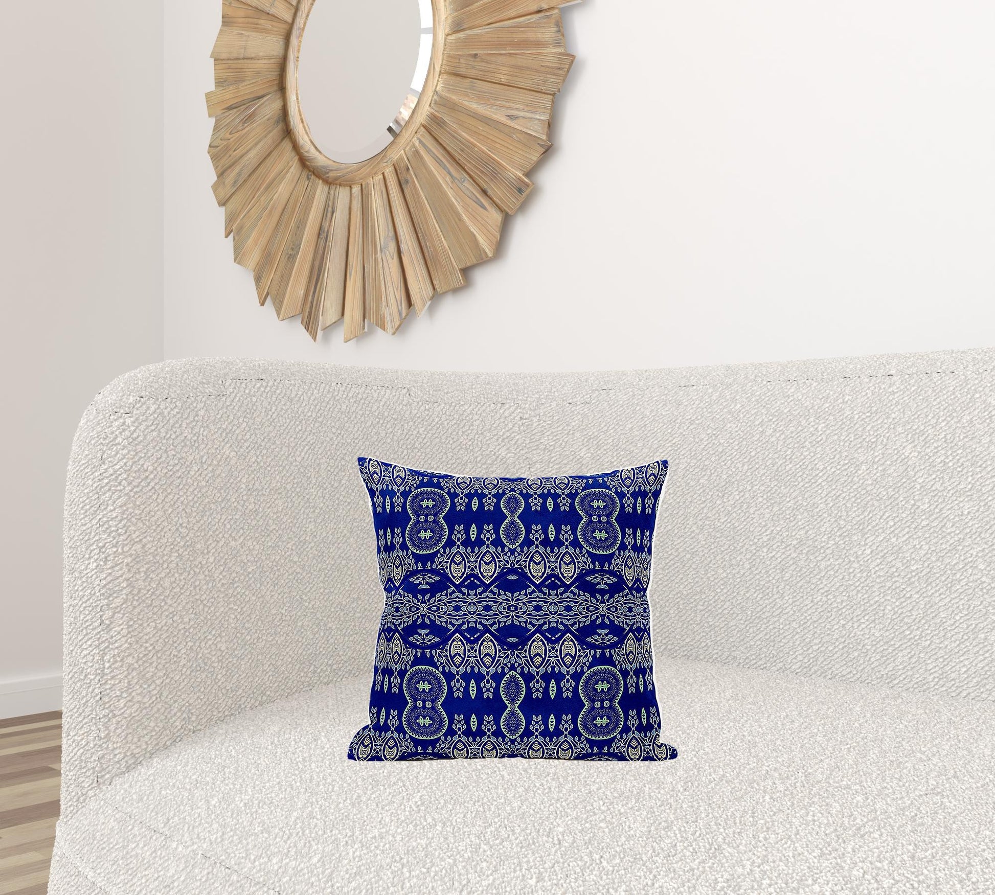 16" X 16" Navy Blue Broadcloth Paisley Zippered Pillow