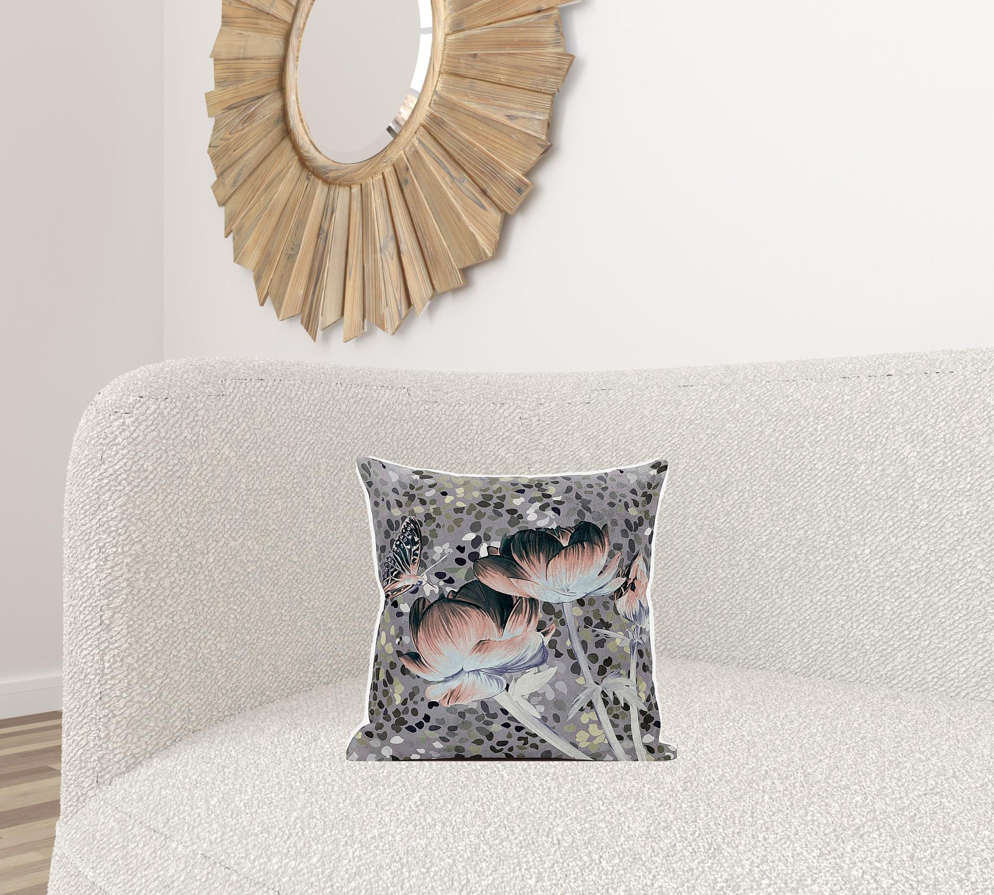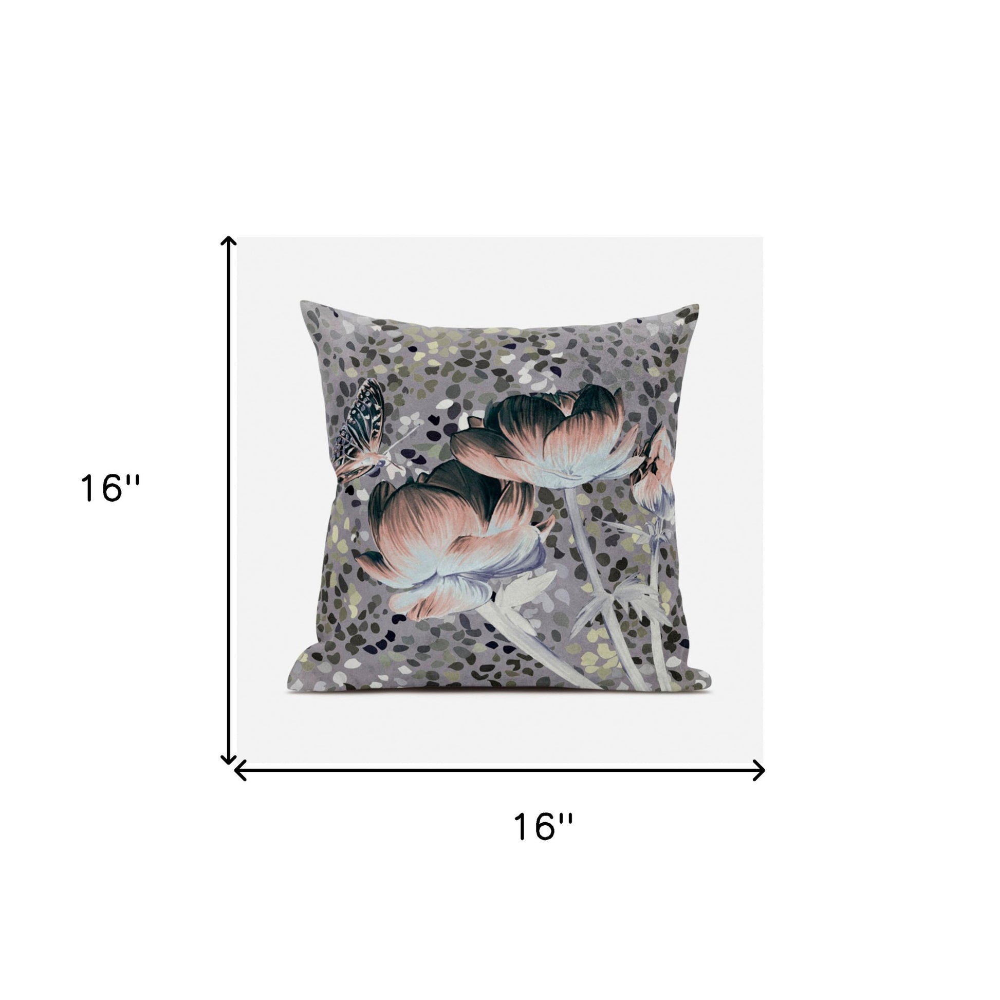 16" X 16" Pink and Green Butterfly Broadcloth Floral Zippered Pillow