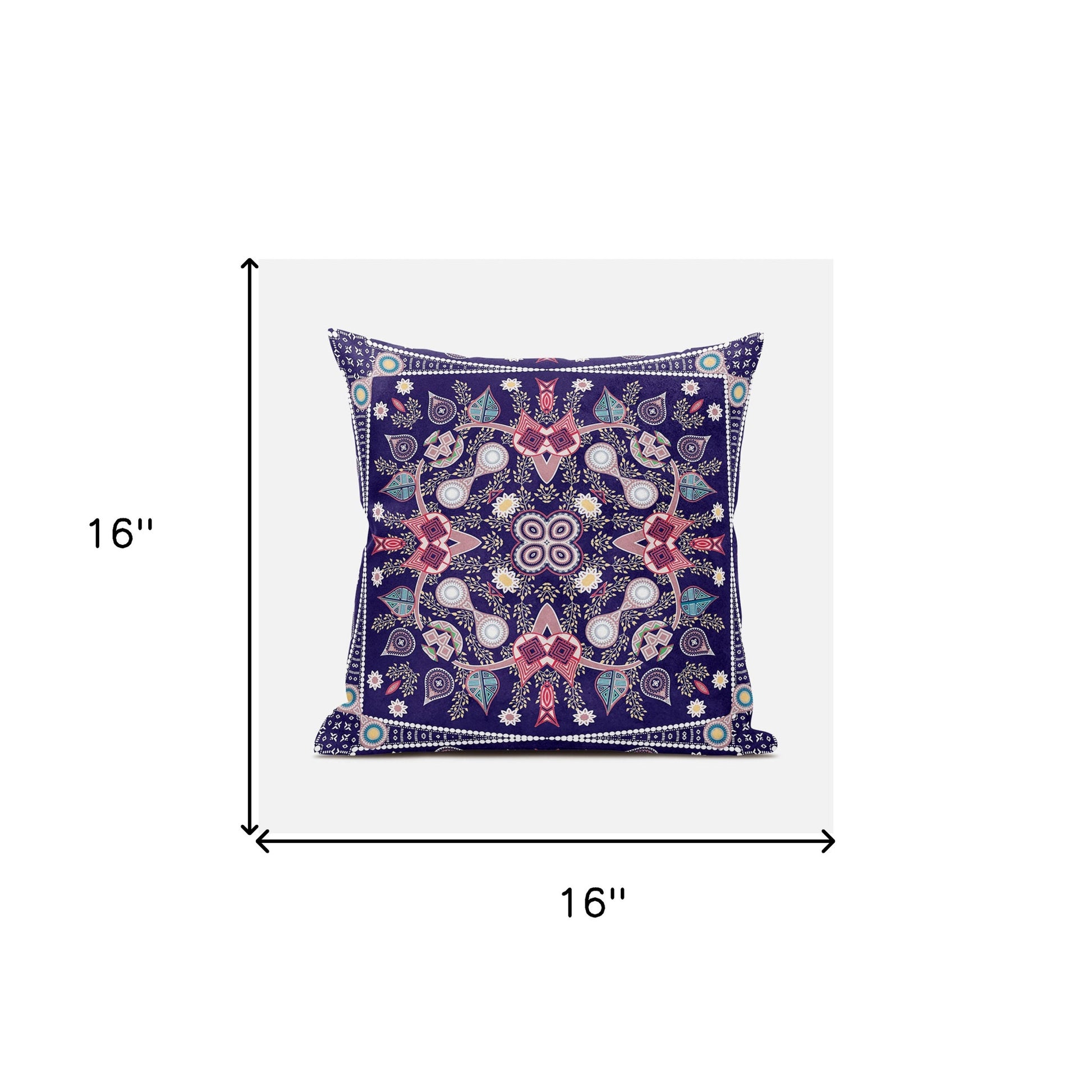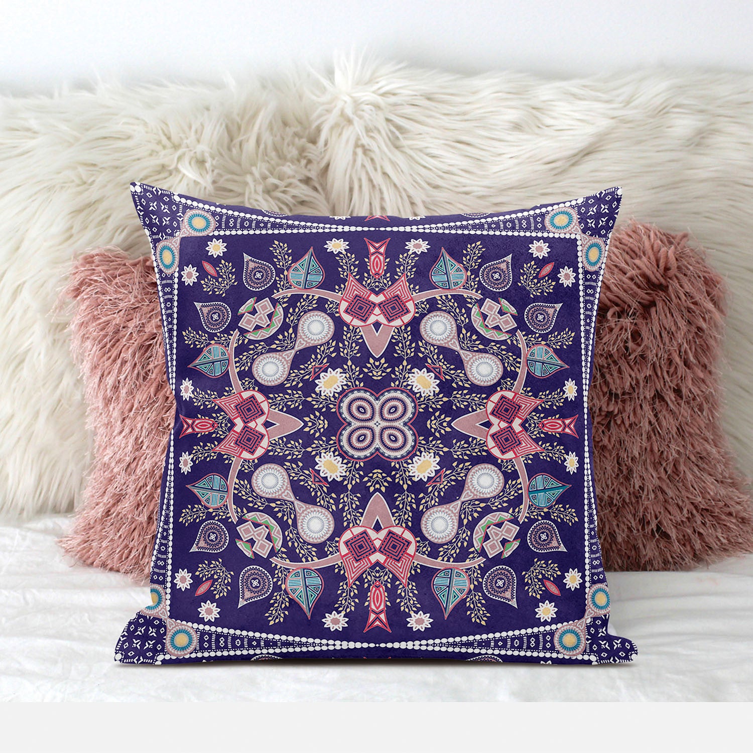 16" X 16" Pink and Purple Broadcloth Paisley Zippered Pillow