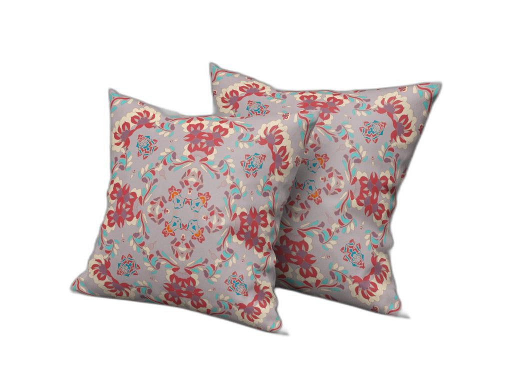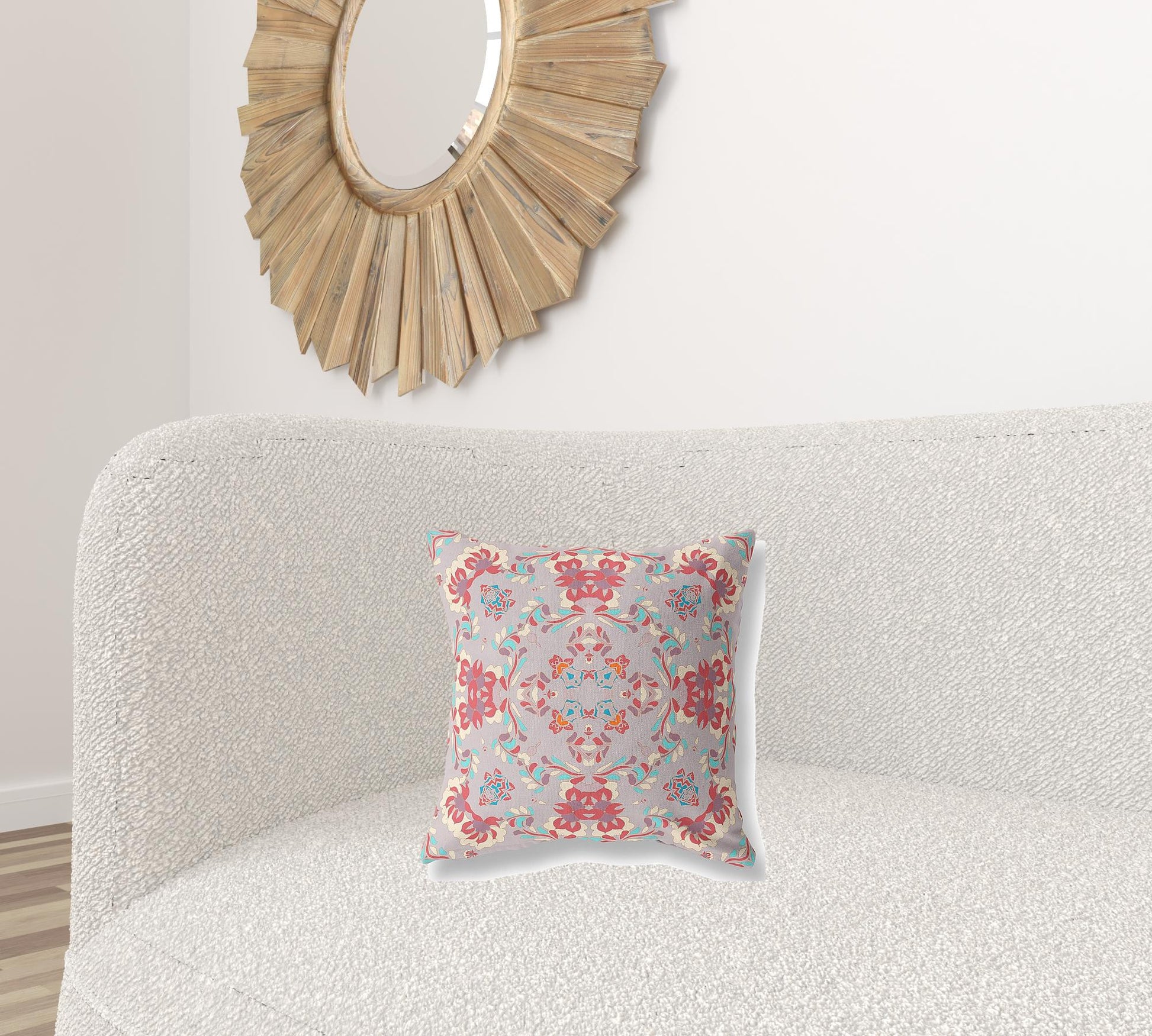 16" X 16" Purple And Red Abstract Blown Seam Suede Throw Pillow