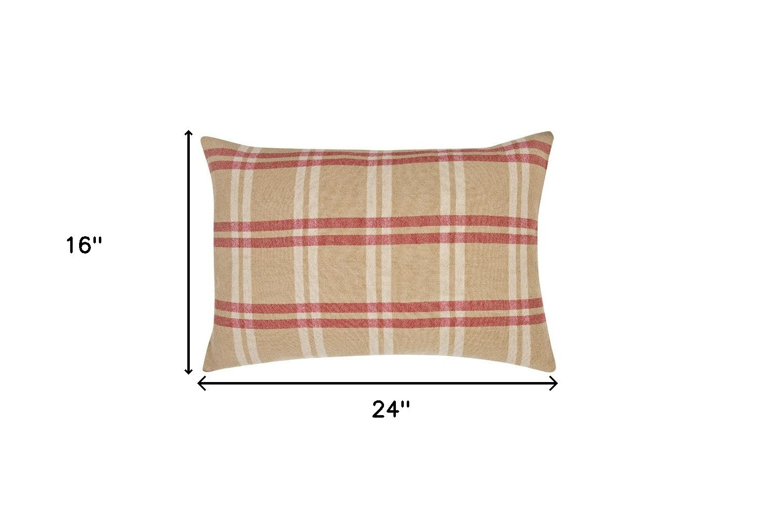 16" X 24" Brown and Red Checkered Linen Blend Zippered Pillow