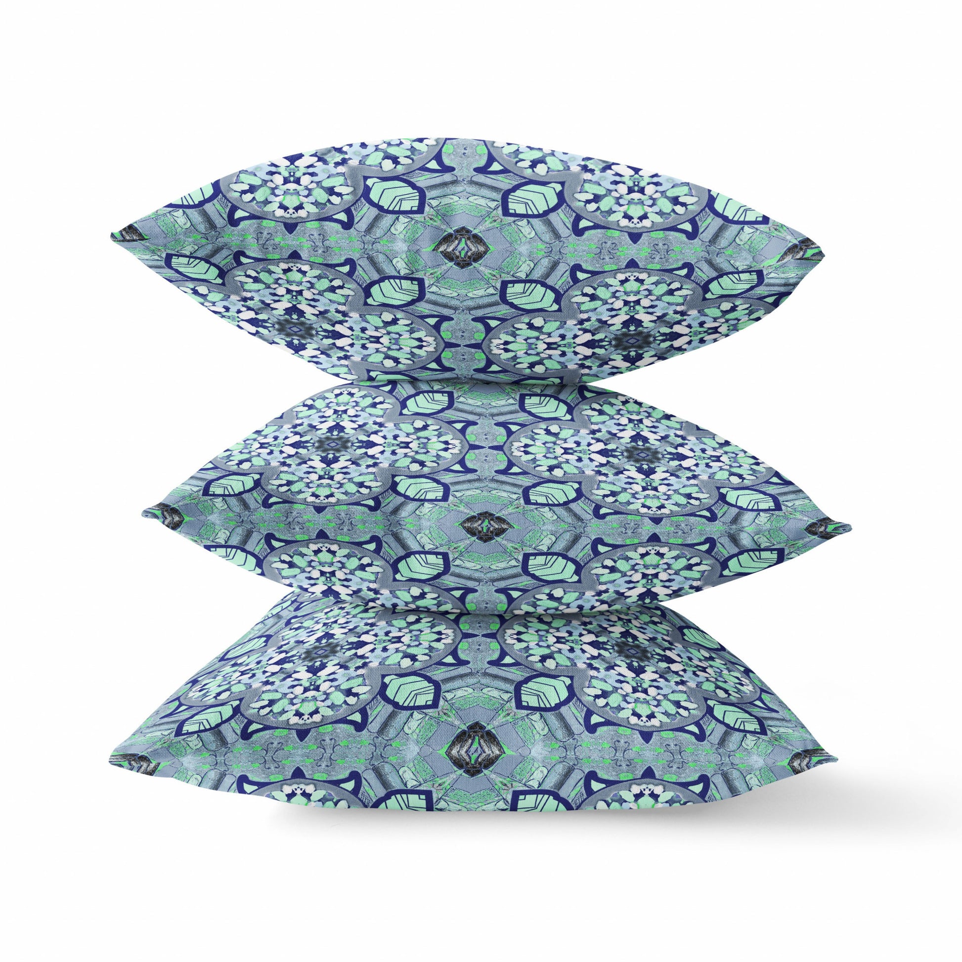 16"X16" Aqua Microsuede Quatrefoil Zippered Pillow