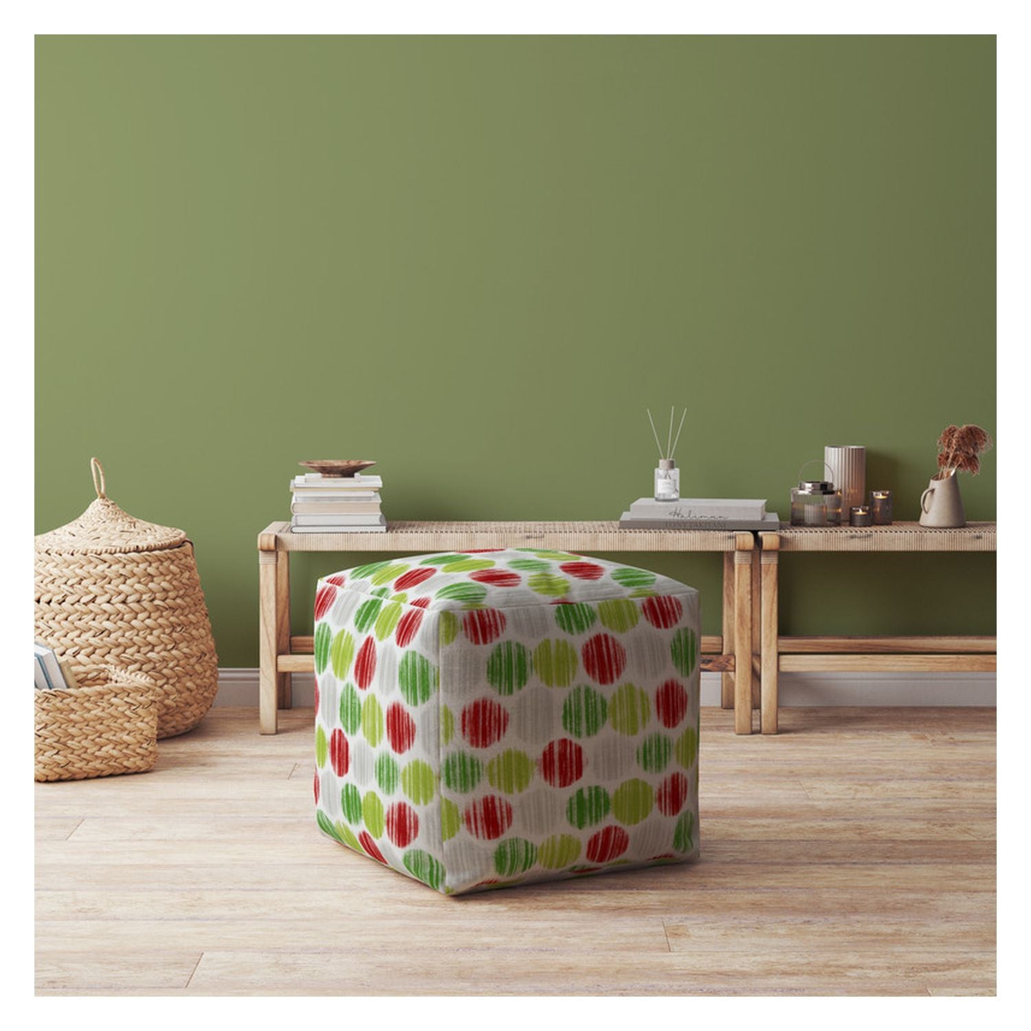 Keywords | cotton polka dots pouf ottoman, polka dots pouf ottoman, dots pouf ottoman, white green red cotton polka, 17" white green red cotton |