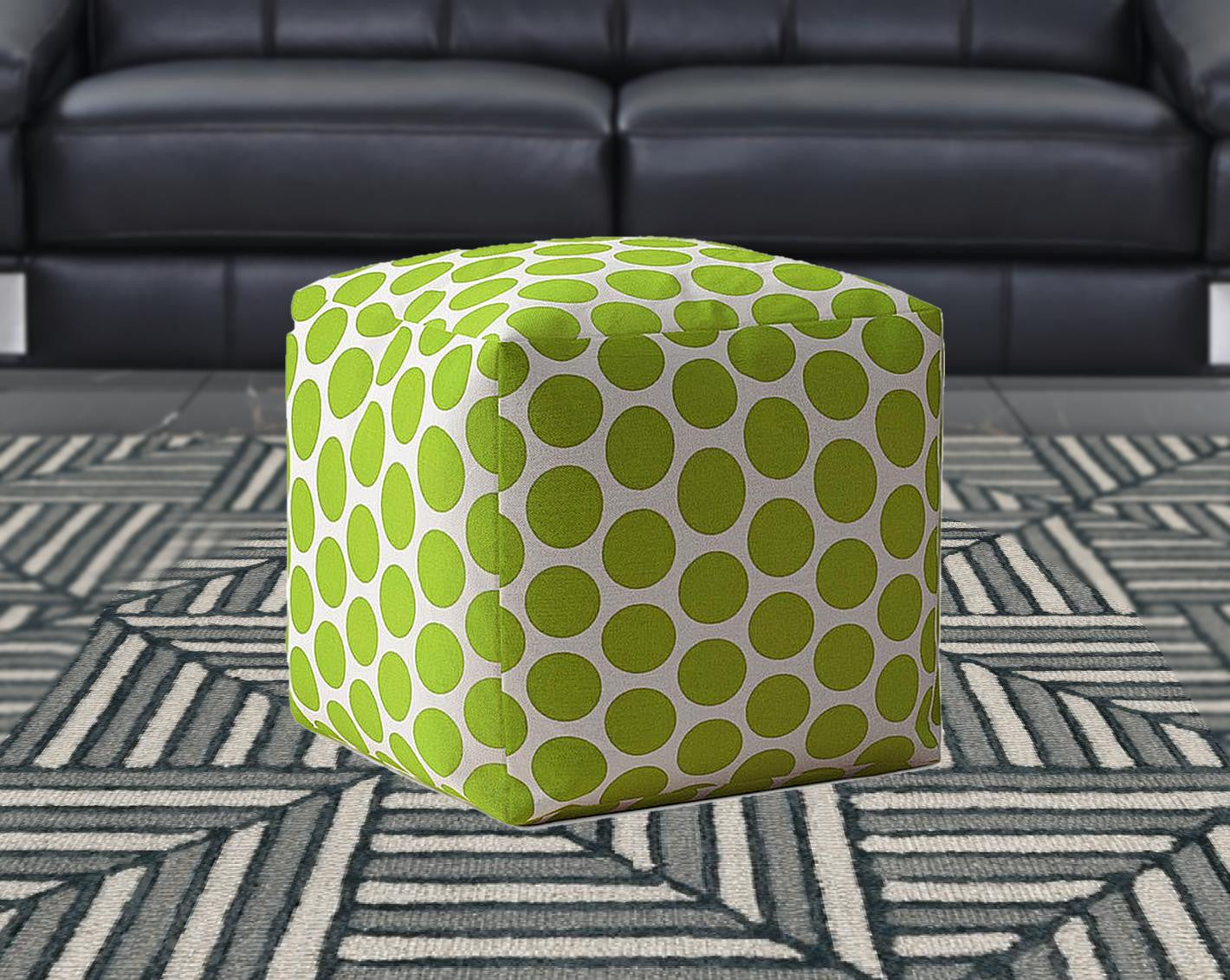 17" Green And White Cotton Polka Dots Pouf Ottoman