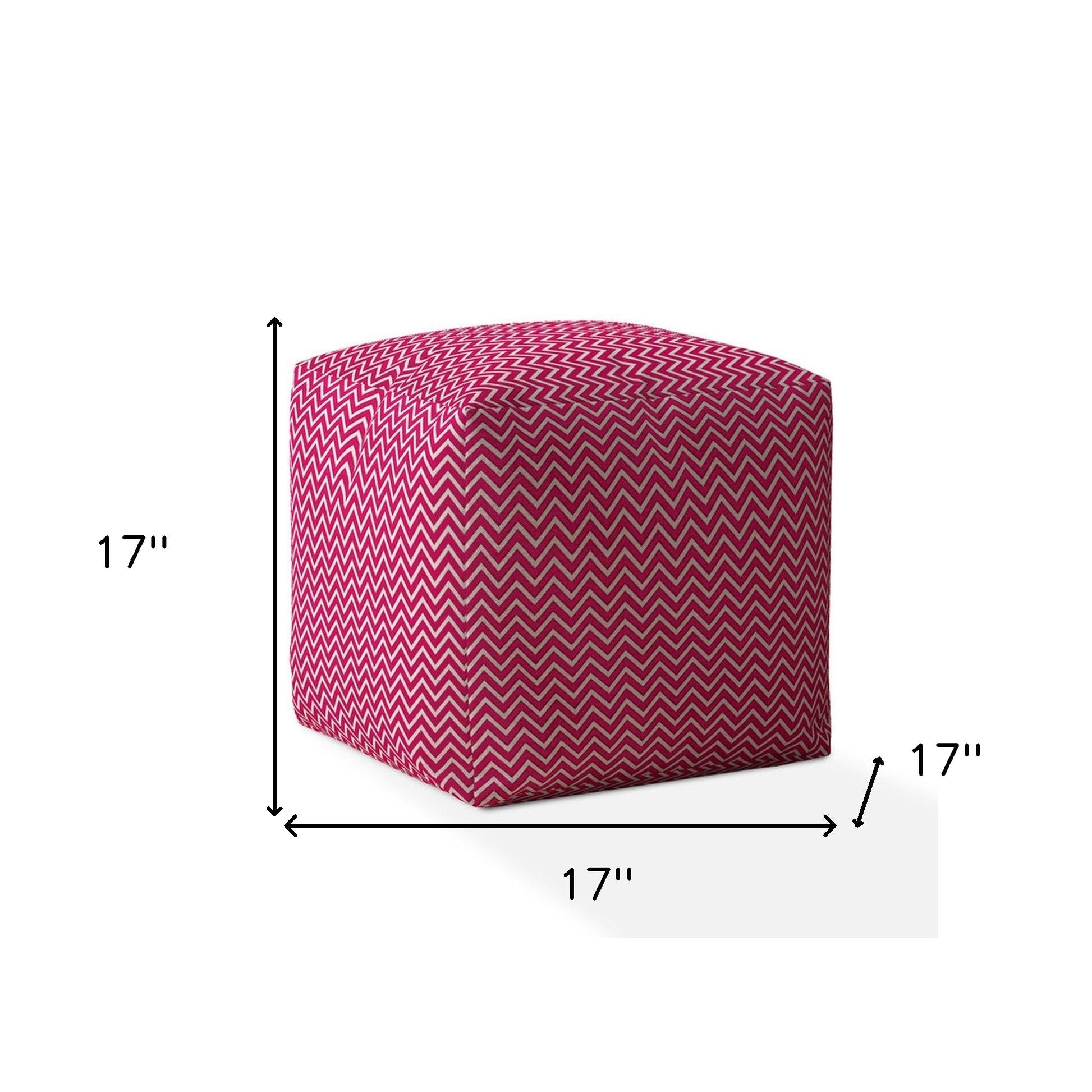 Practicality and fashion mix together with this handy 17" pink cotton chevron pouf ottoman. Add chic style to your space with this fun pouf that not only looks cool but can be a great foot rest or extra seat when needed. Expertly upholstered with padding and soft cotton in a chevron pattern, this ottoman is as comfortable as it is good looking. Ottomans are multi-functional additions to your space that add fashion and practical value. 17" H x 17" W x 17" D