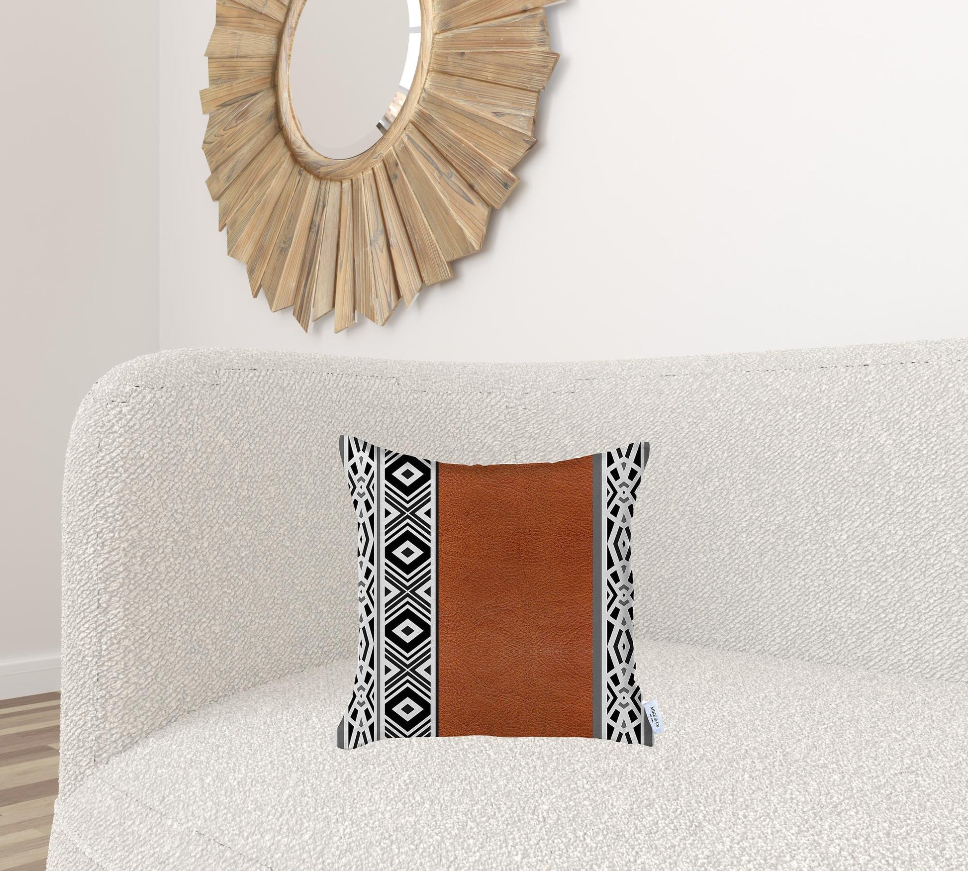 17" X 17" Brown Geometric Zippered Handmade Faux Leather Throw Pillow Cover
