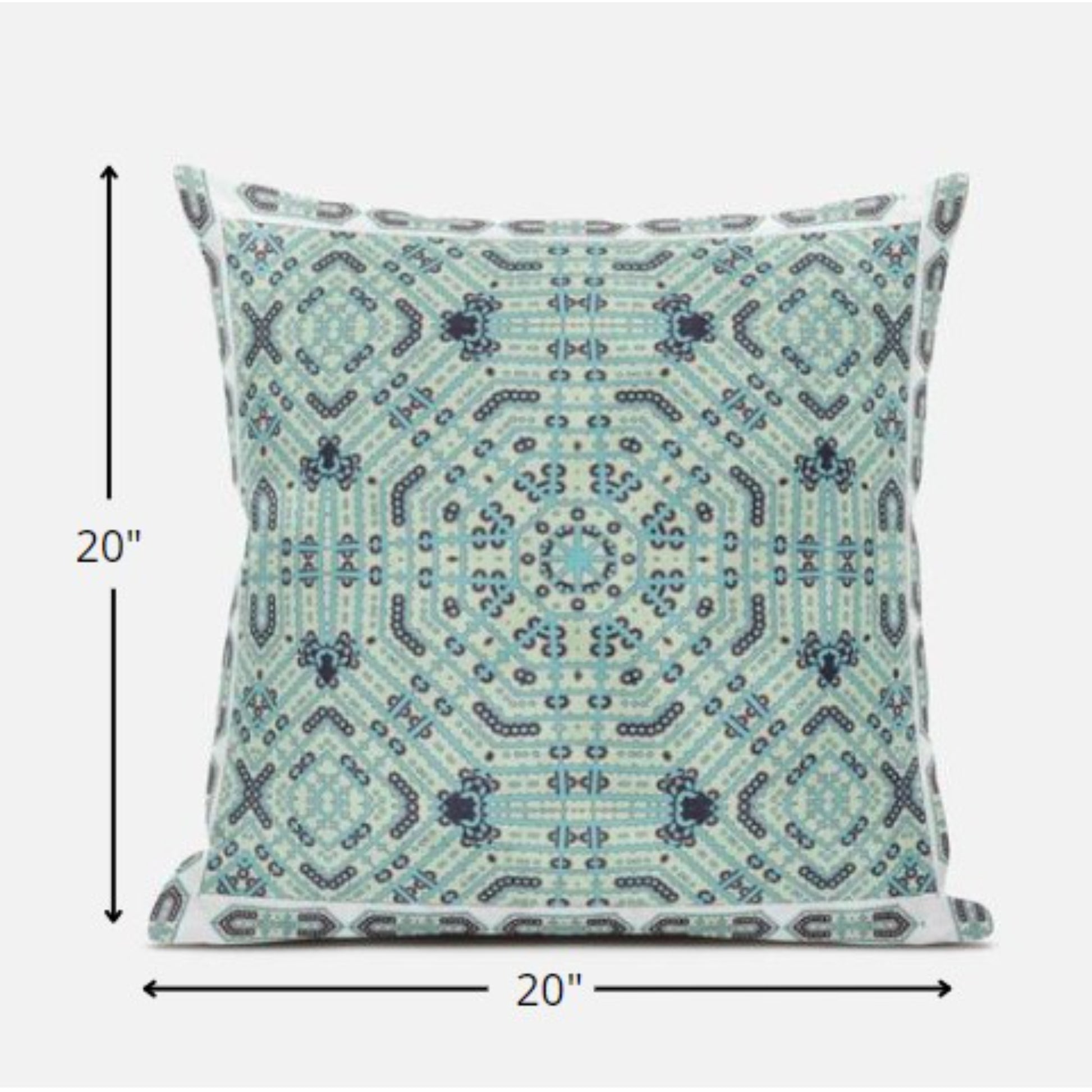 Capture the serenity of the ocean with Aqua Geostar Zippered Suede Throw Pillow that features an eye-soothing palette to induce a relaxing ambiance into your living space. The intricate geometric detailing in shades of blue and aqua accentuates a stunning star pattern, giving this pillow a refreshing tone with a bohemian flair. This decorative pillow is constructed from high-quality suede fabric which is known for its durability, shiny appearance, and smooth surface texture. The soft polyfill inserts offer a luxurious and cozy feel while the zippered closure makes the cover easy to remove and clean. To give your boho-chic home a fresh new update, go for this beautiful decorative pillow that will work well with both bright and bold-toned decors. 18” x 18” x 5”