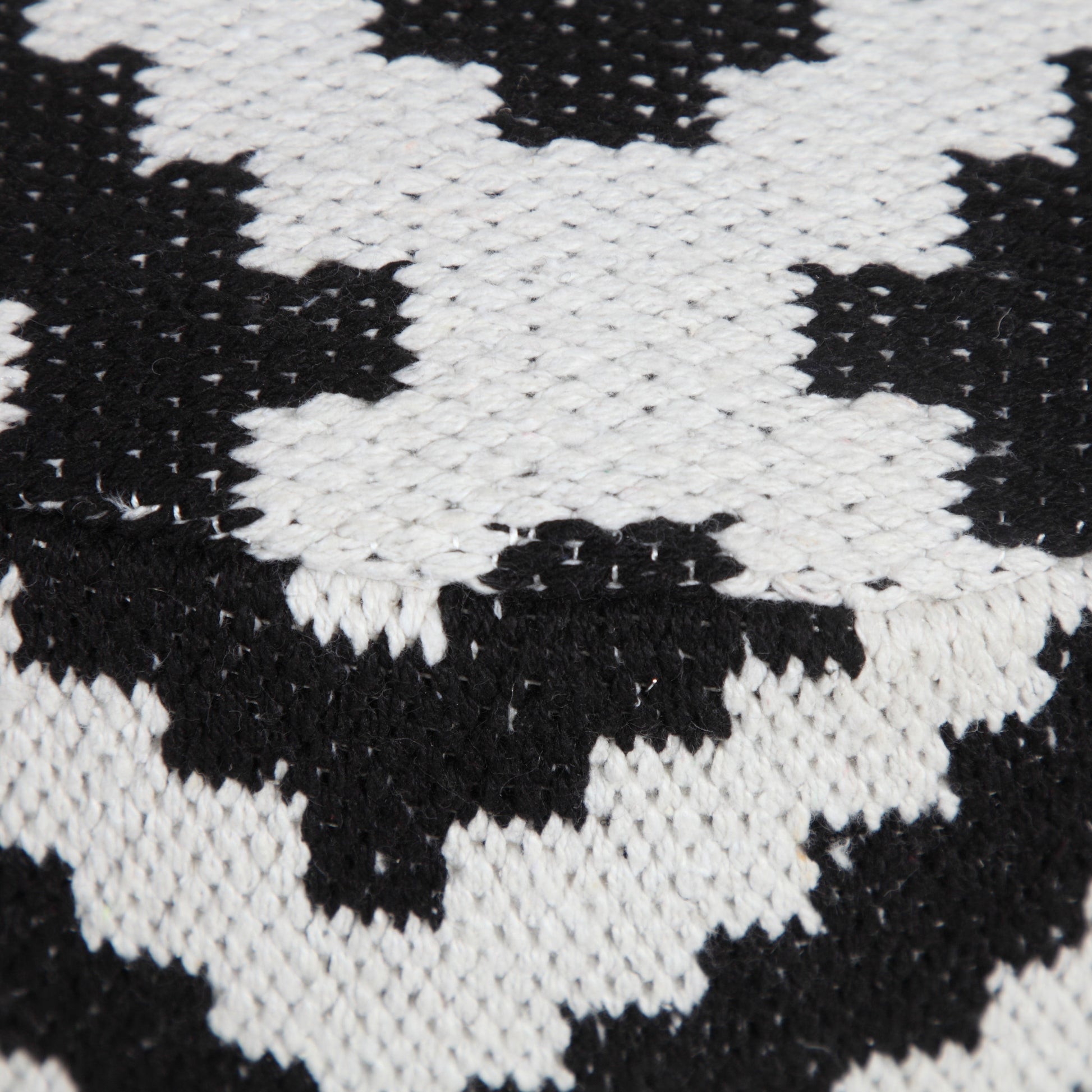 Optimize your space and add some charm to your room with the 18-inch black cotton blend ottoman. Ottomans are multi-functional additions to your space that add fashion and practical value. 14-inch H x 18-inch W x 18-inch D