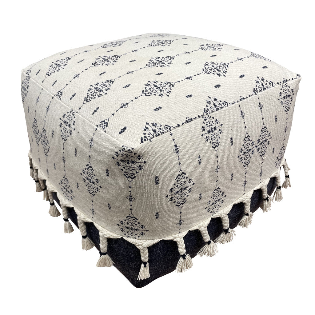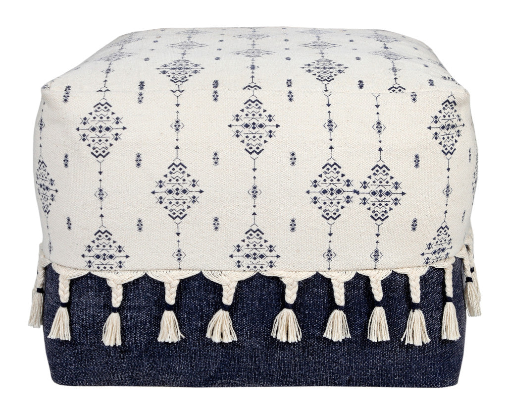 Get ready to relax with this 18-inch blue 100% cotton ottoman. Easy to blend into most any room, a ottoman is a way to add a good looking accent to your space that can also be practical and useful. . 14-inch H x 18-inch W x 18-inch D