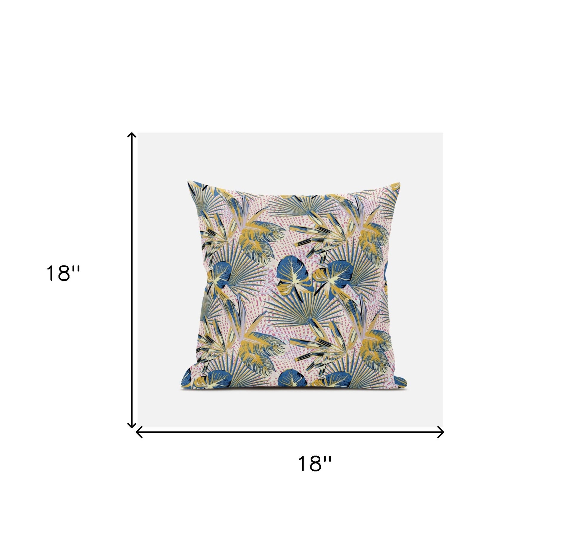 Combining bright colors with a botanical print, this gorgeous Blue Gold Tropical Suede Throw Pillow makes for an enticing decorative piece to add a fun pop of color to your tropical home. The stunning display of tropical leaves in gold and blue accents look captivating against the bright pink and white background, striking a perfect balance of cool and warm tones to spruce up your coastal or beach-side home. Made from high-quality suede fabric for a durable structure and premium feel, it's the perfect accent for adding a touch of class and comfort to your home. The polyfill insert makes this blown and closed pillow super soft and cozy with added fluffiness providing utmost comfort to your neck and back. Set a cheerful natural tone into your living room with this beautiful throw pillow that will undeniably be an element of color and comfort in your home. 18” x 18” x 5”