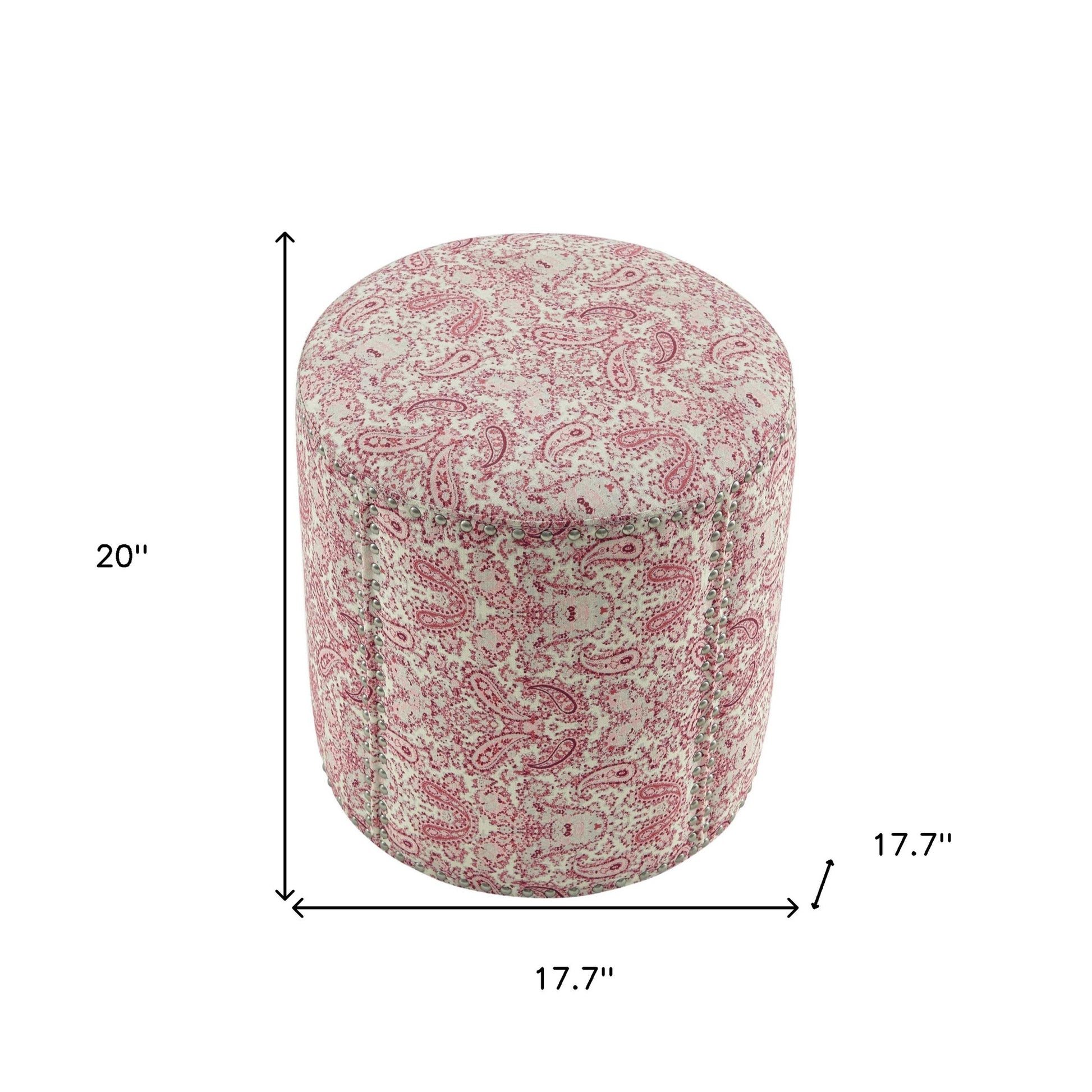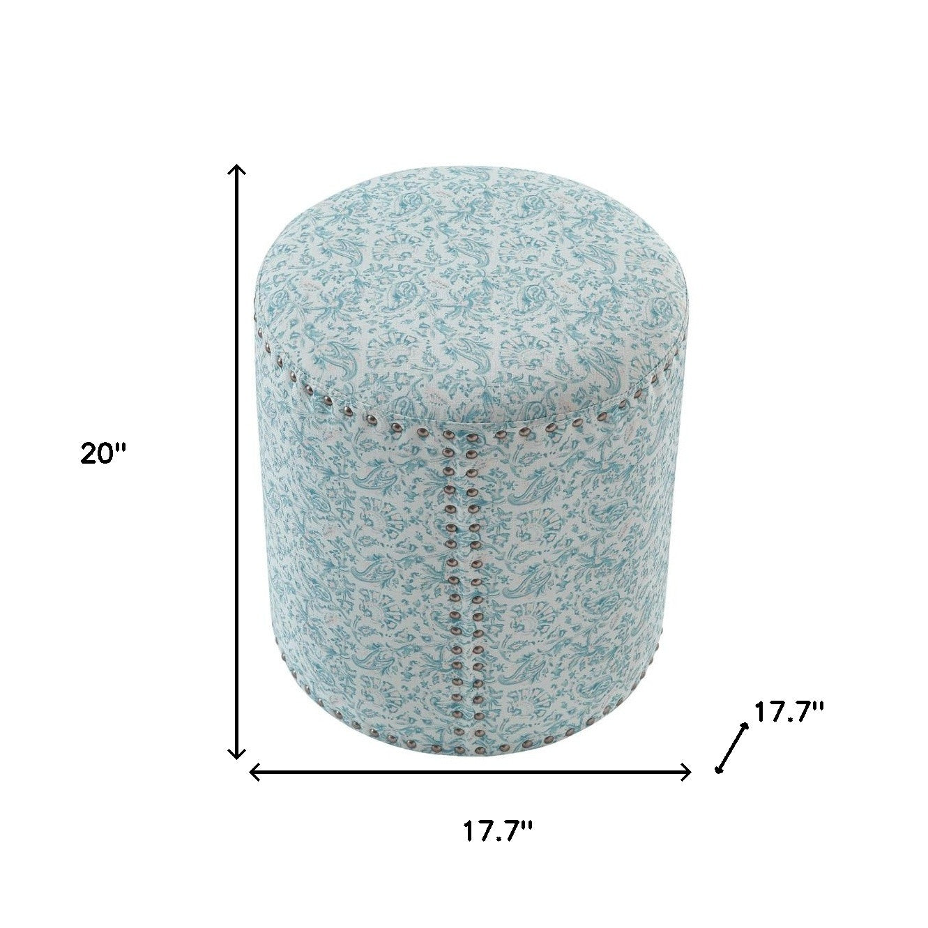 Optimize your space and add some charm to your room with the 18" blue linen round floral ottoman. Expertly upholstered with padding and soft 100% linen in a floral pattern, this ottoman is as comfortable as it is good looking. Fine detailing such as nailhead trim give this ottoman a rich and elegant look Ottomans are multi-functional additions to your space that add fashion and practical value. 20" H x 17.7" W x 17.7" D