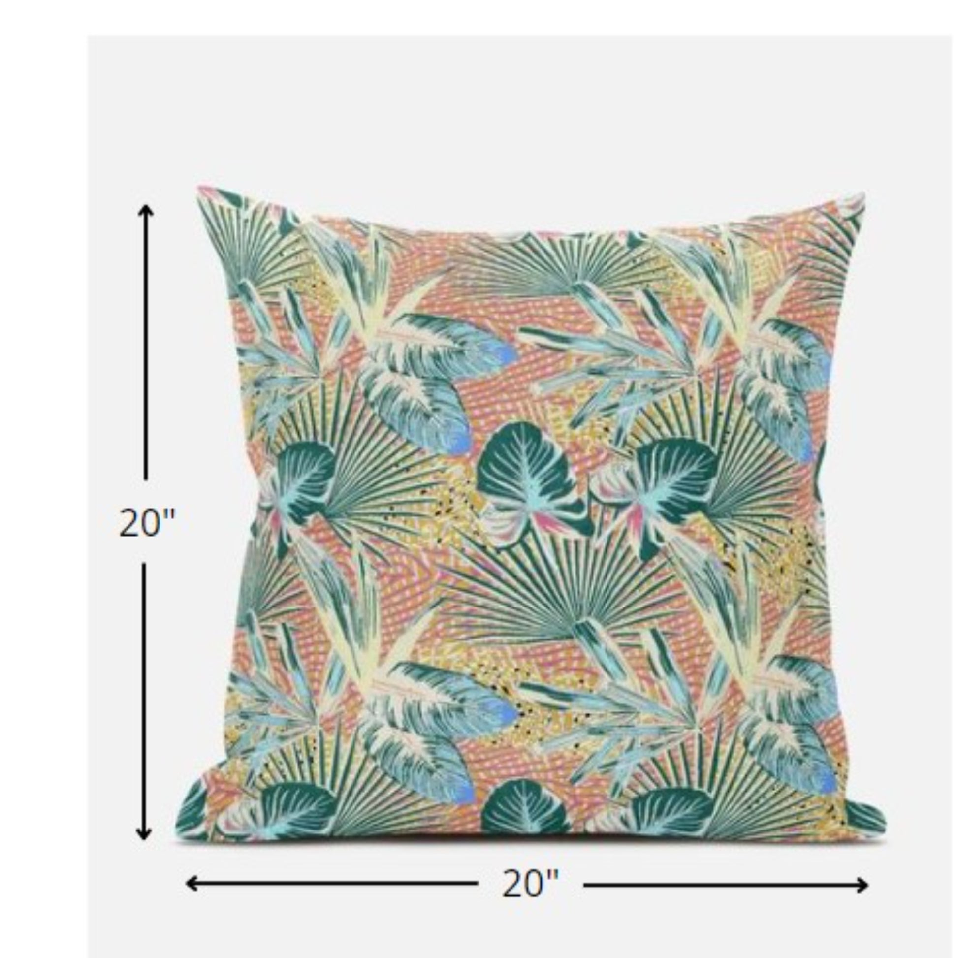 Subtle and playful all at the same time, this exquisite Blue Peach Tropical Zippered Suede Throw Pillow Pillow presents a blend of cool and warm-toned hues to give your tropical living space an alluring update. The pleasant peach-toned base is brimming with lush tropical foliage in shades of light blue and teal for a sense of serenity while the pops of yellow add a lively spirit to the pillow. The superior suede fabric featured on the throw pillow gives it a premium feel while also being durable to last for a long time. This pillow is filled with 100% polyester fiber insert, giving it a lavish springy feel with a fluffy nature to provide utmost comfort, while zippered closure makes the cover easy to take off for washing. Give any modern, bohemian, or beach-side home a colorful update with this decorative throw pillow that will seamlessly blend in with a variety of interior themes and decors. 18” x 18” x 5”