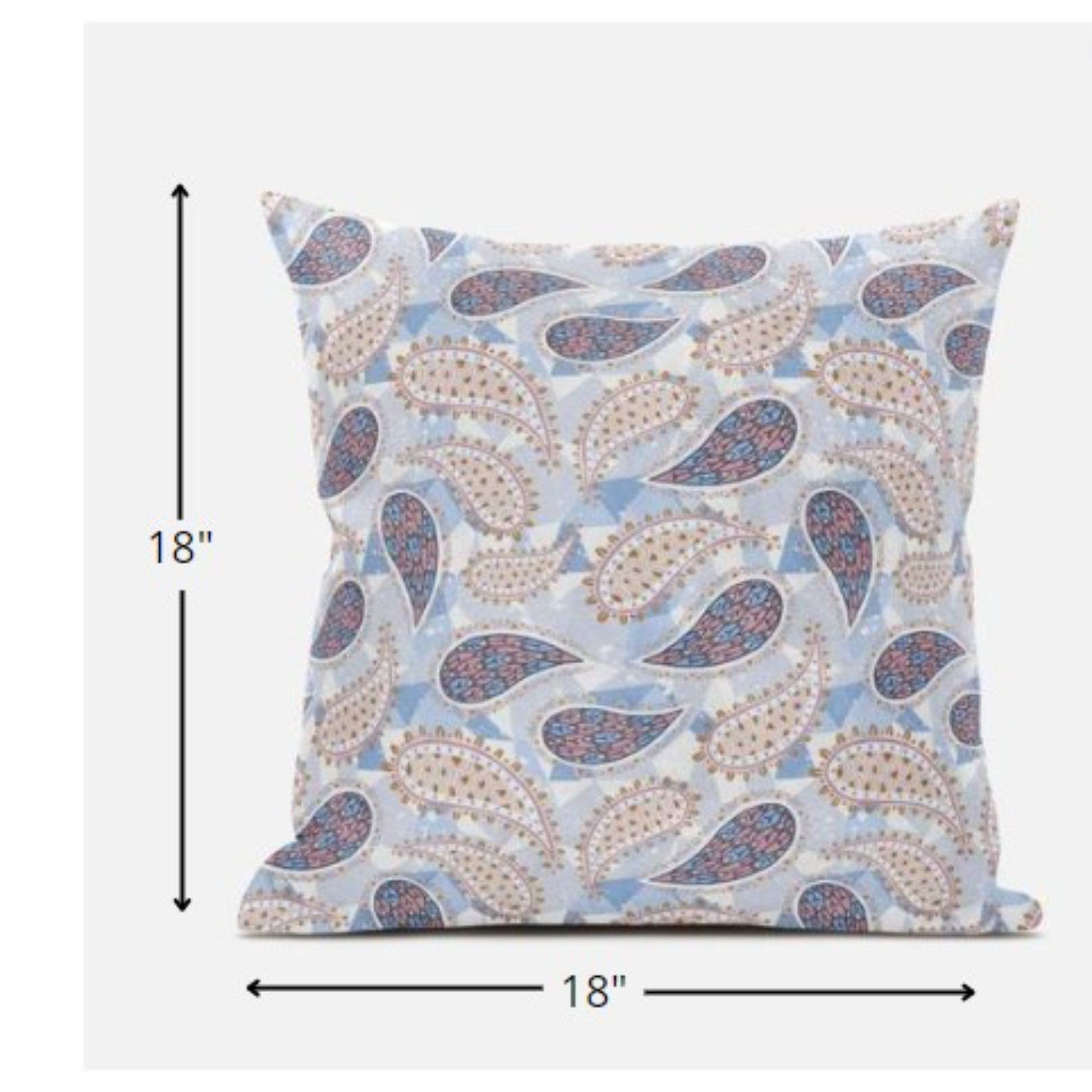 Combining botanical patterns with cool-toned hues, this eclectic Blue Pink Boho Paisley Suede Throw Pillow is sure to add a bohemian panache to your contemporary abode. The alluring paisley patterns create a harmonious medley of peachy pink tones over the soft blue geometric base for an eye-soothing appeal. The blown pillow is carefully crafted with a premium suede fabric that gives it a feel of luxury while also being functional for everyday use. The plush look and fluffy nature come from the regular polyfill insert that provides a comfortable platform for your head and neck to maximize relaxation. Complement the modern aesthetics of your home with this quintessential boho throw pillow to induce an ambiance tailored to elegance. 18” x 18” x 5”