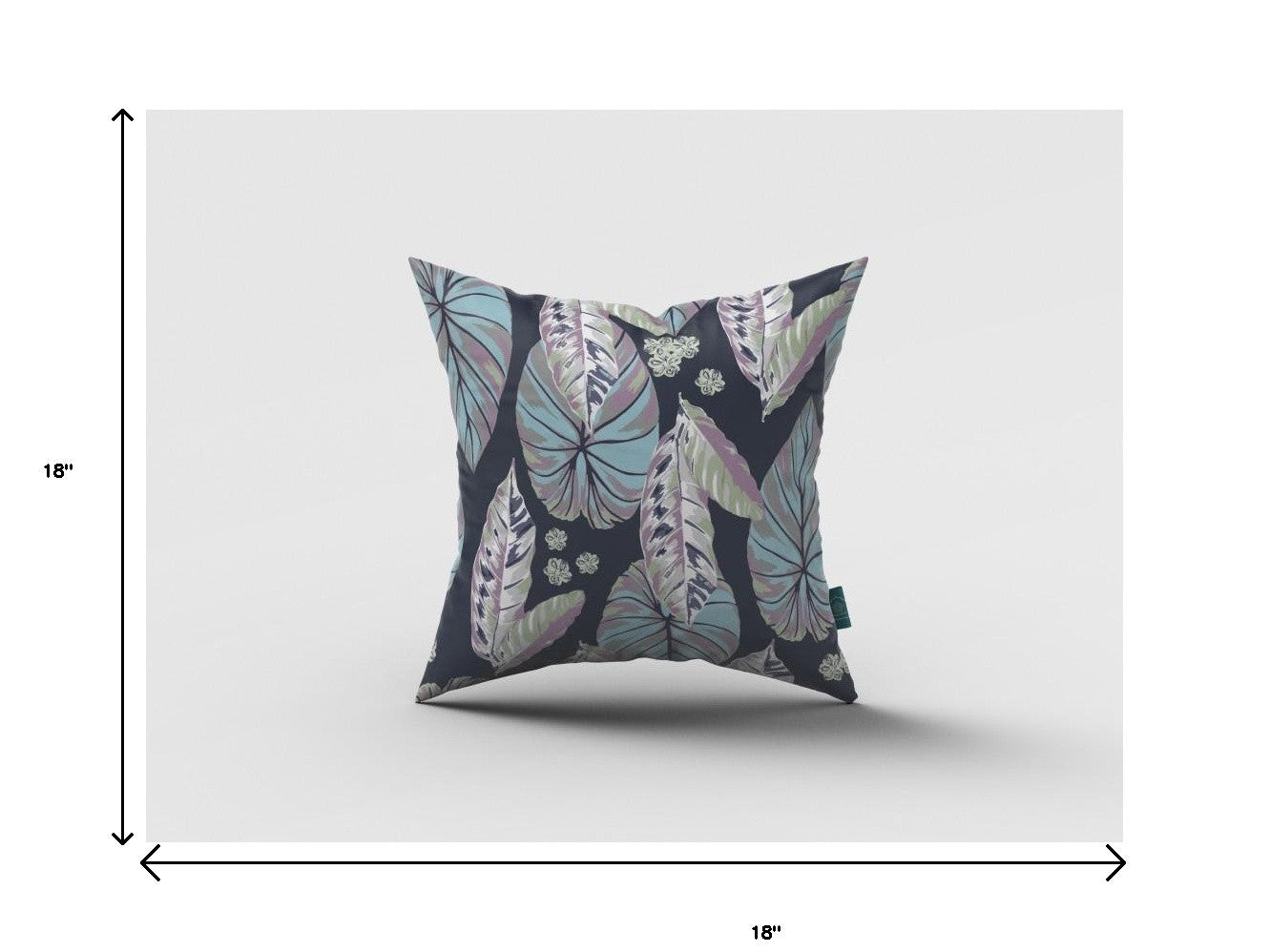 18” Blue Purple Tropical Leaf Zippered Suede Throw Pillow