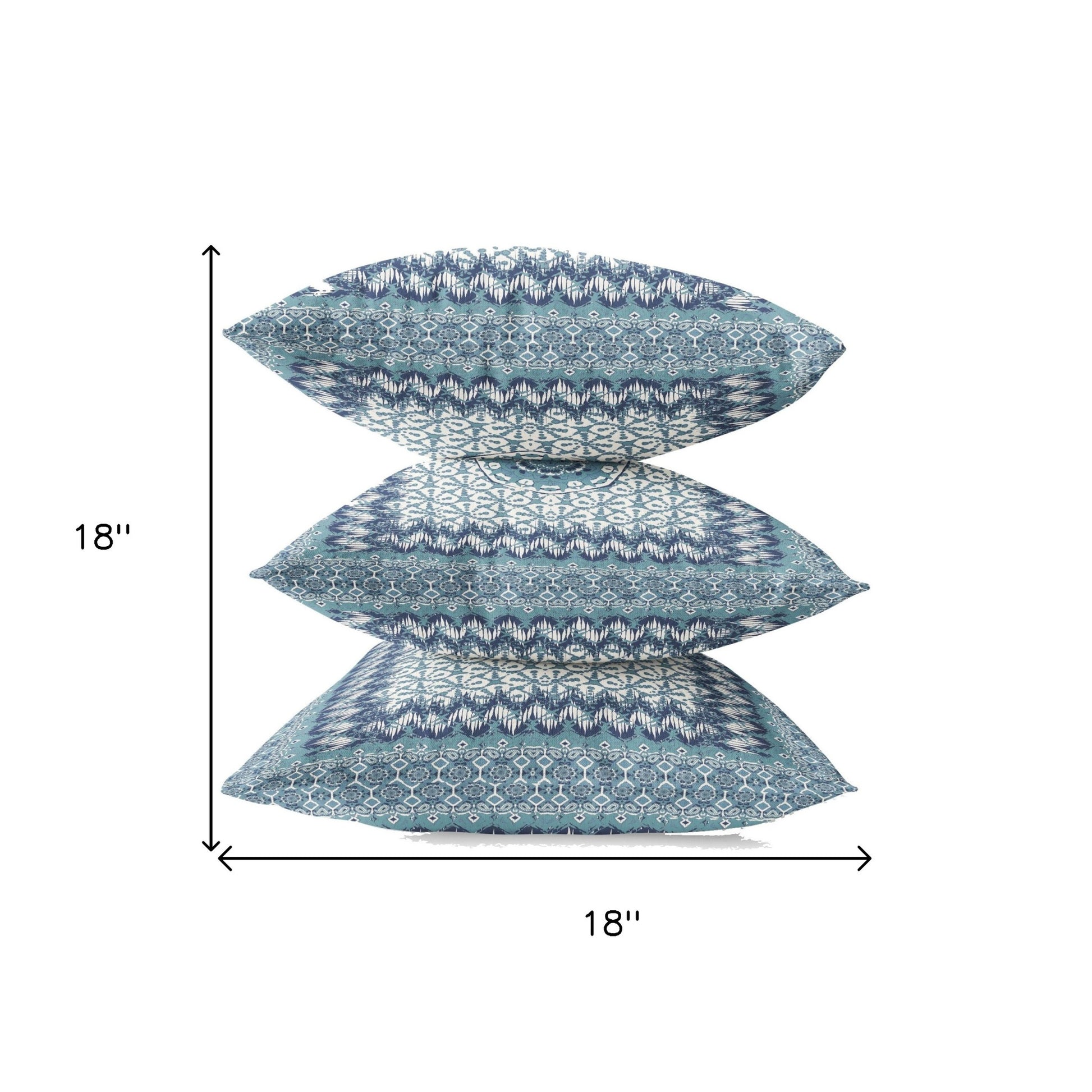 18” Blue White Holy Floral Zippered Suede Throw Pillow