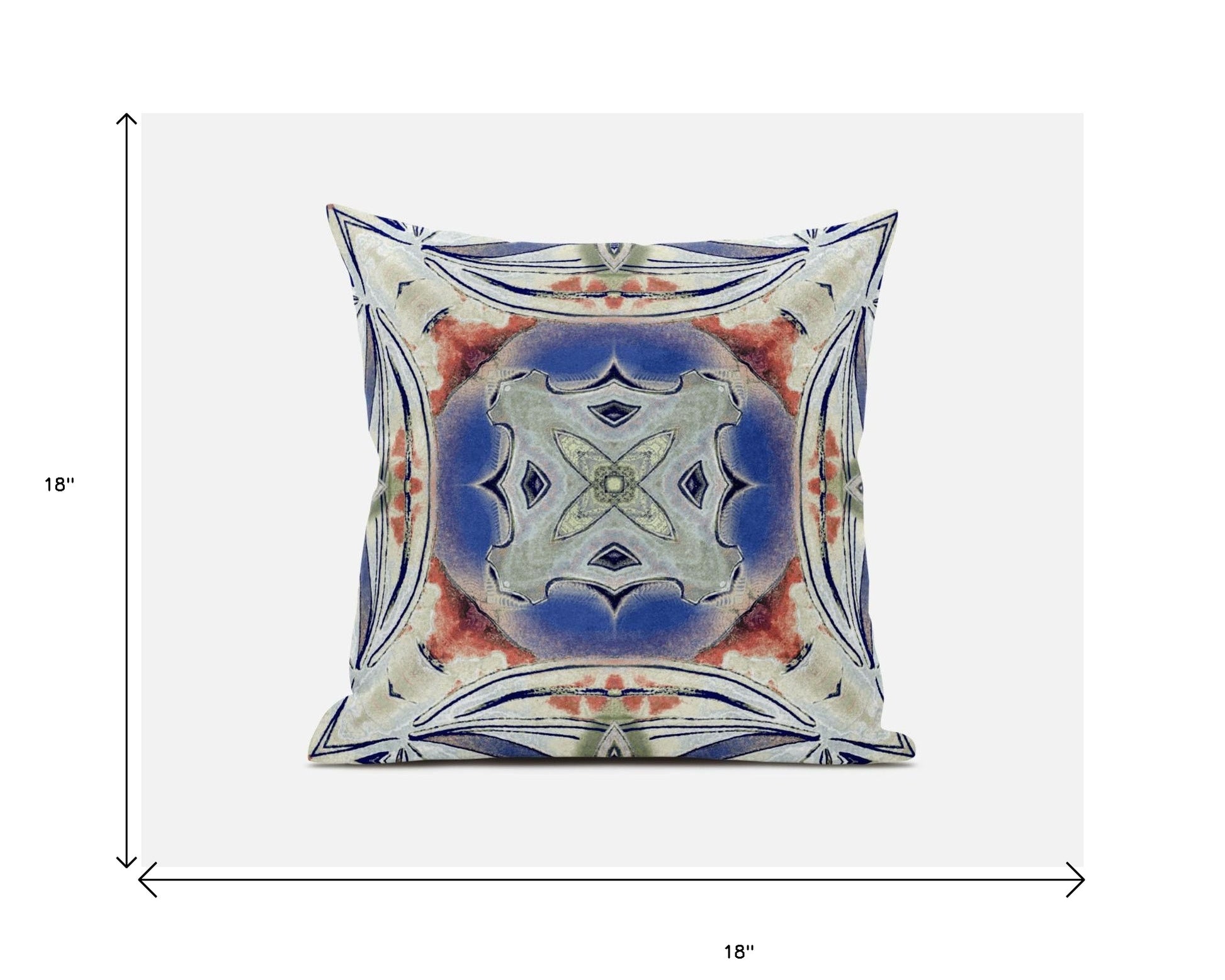 Centering a geometric flower with a boho-chic vibe, this Cream Peach Geo Tribal Suede Throw Pillow will give a sense of calmness to your interior decor. The soothing pastel palette features a blend of cream and cobalt blue with splashes of peachy pink tones for a pleasant contrast while the strokes of navy around the edges and center give the pillow a tribal essence. This pillow is crafted from premium-quality suede fabric which is characterized by its soft and smooth surface texture for a delicate feel. With a polyester filling insert as soft as the clouds, the blown and closed pillow is perfectly suited for you to rest your head on. Emphasize a comforting atmosphere in your boho-chic living space with this soft-toned throw pillow that is meant to stand out in style and elegance. 18” x 18” x 5”