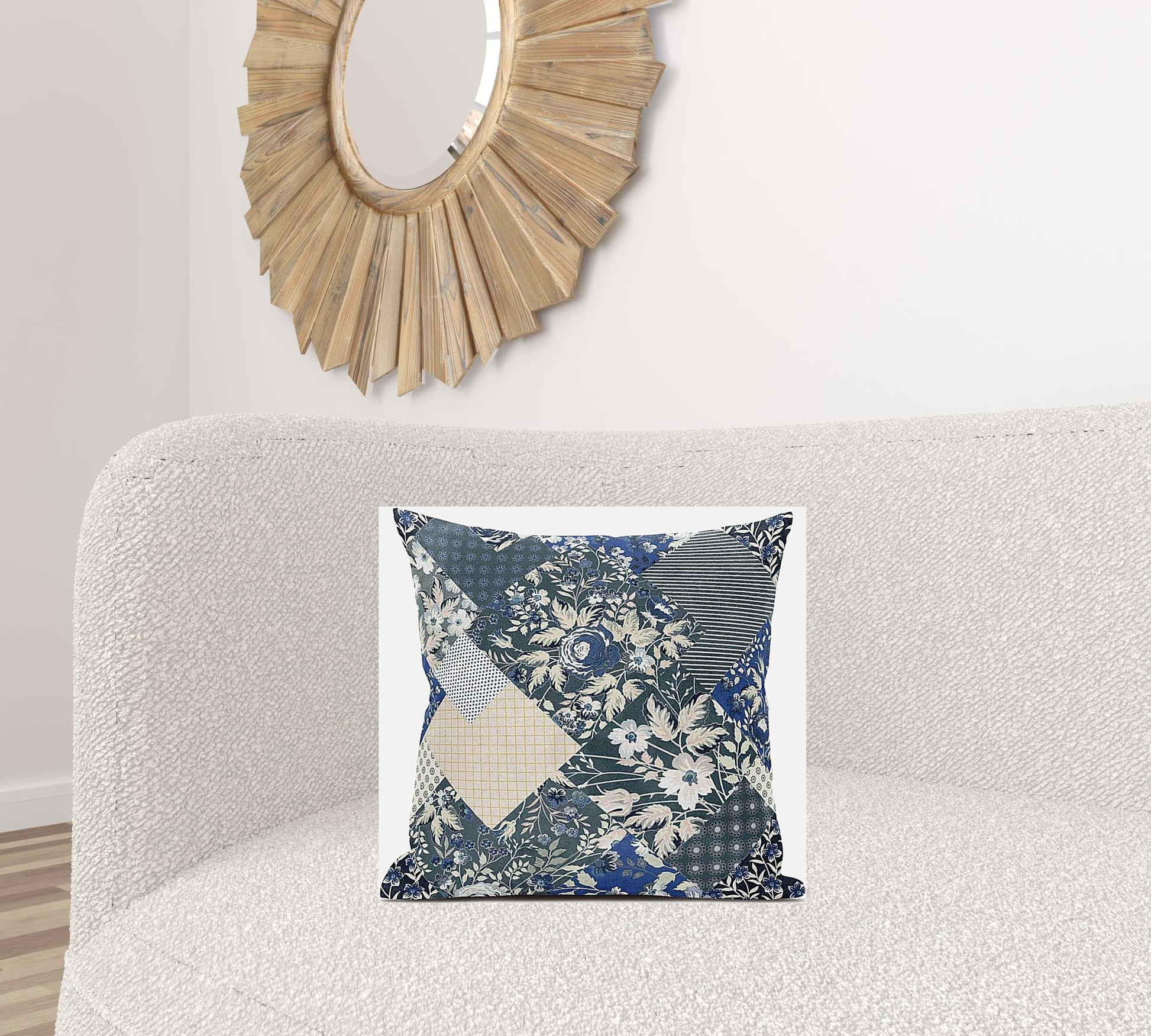 Make a bold statement into your living space with this Gray Cream Floral Suede Throw Pillow that will add an element of style and elegance to your home. With patches of floral and geometric design in deep gray, blue, and cream, this pillow is bound to grab attention. This blown pillow features a high-quality polyfill insert from optimum comfort while making the piece super fluffy for a luxurious feel on the touch. Made in the United States from top-notch suede fabric, which is highly durable to last for a long time, while the soft and smooth surface texture provides a glossy sheen for a plush appearance. Pair this decorative throw pillow with neutral-toned decors for a striking contrast in your contemporary or bohemian space. 18” x 18” x 5”