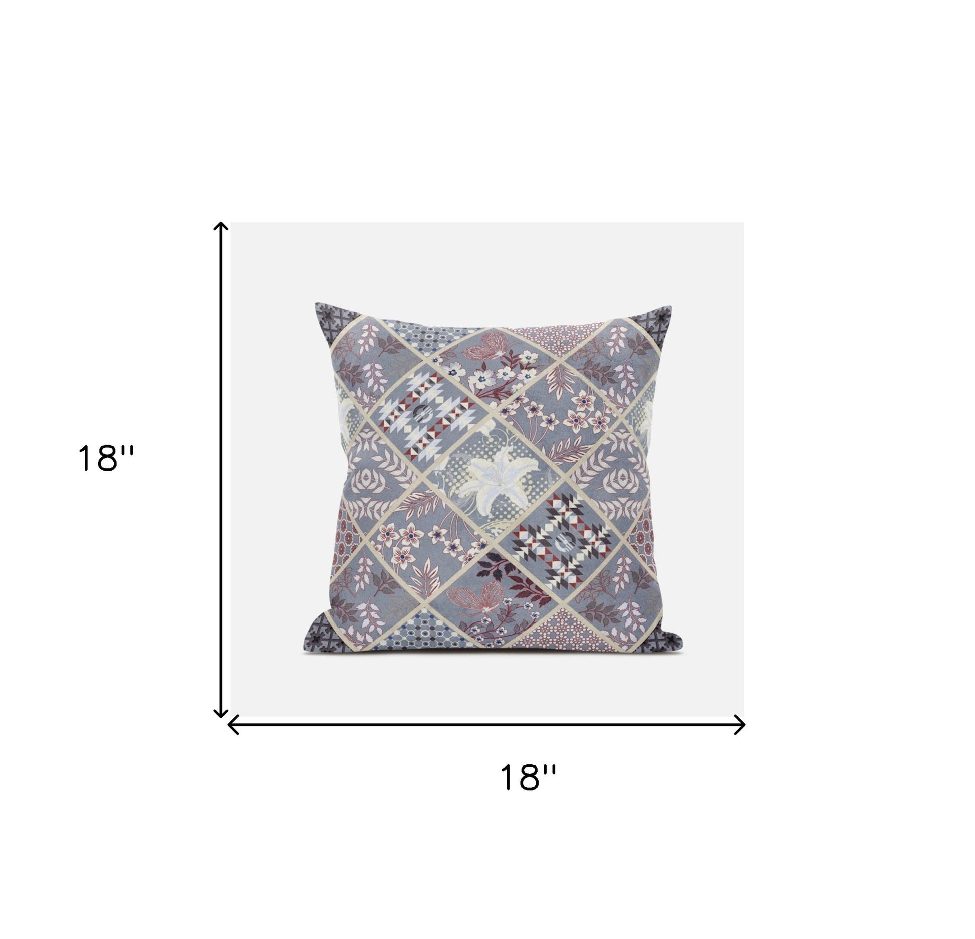 Embrace a classic-modern vibe into your living space with this beautifully designed Gray Pink Patch Suede Zippered Throw Pillow. The cool-toned gray patches are adorned with eclectic floral patterns in cream, white, and mauve-pink to create an elegant piece of art on the surface for visual intrigue. The silky sheen and smooth surface texture can be attributed to the high-quality suede fabric which makes this pillow highly durable, soft, and easy to clean. It comes with a soft polyfill insert giving the pillow a plush and fluffy look while maximizing comfort. Also, the zippered closure makes the cover easily removable for cleaning purposes. If you want a stylish accent piece in the room with a traditional core, this decorative pillow will be the perfect piece to update your boho-chic interior. 18” x 18” x 5”