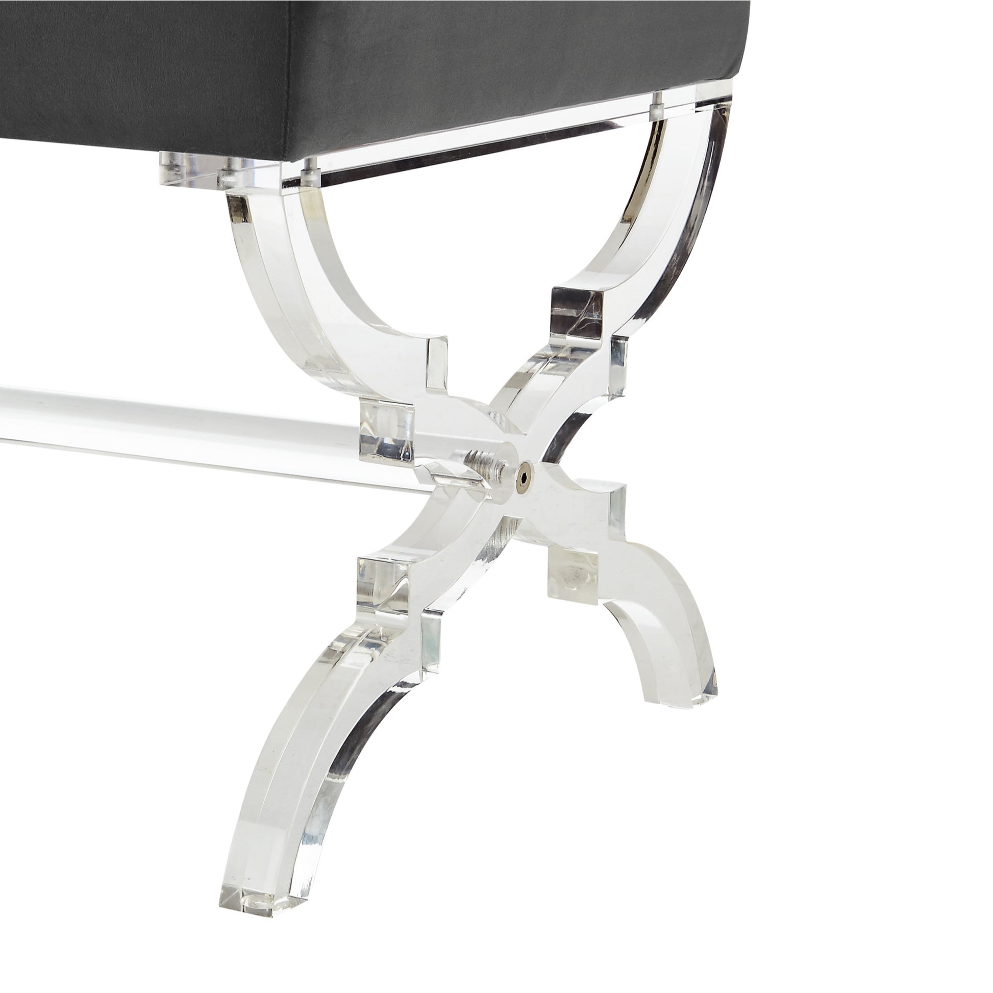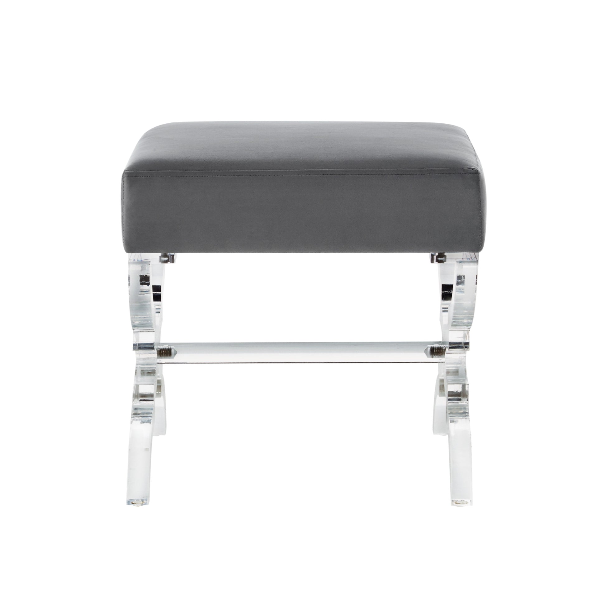 Add a good looking decorative accent to your space that is also practical for seating. A clear acrylic frame is finished off with a gray upholstery seat that is the epitomy of quality construction and design. Expertly upholstered with padding in a soft solid color velvet, this ottoman is as comfortable as it is good looking. Easy to blend into most any room, a ottoman is a way to add a good looking accent to your space that can also be practical and useful. . 18" H x 18" W x 18" D