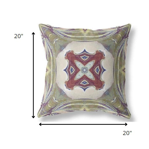 18” Green Brown Geo Tribal Suede Throw Pillow