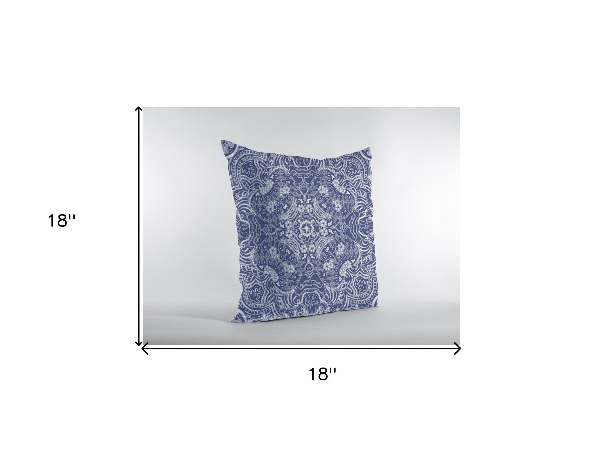 Bring a blissful bohemian aesthetic into your living room with this Indigo White Boho Ornate Zippered Suede Throw Pillow. The intricate decorative detailing in white and gray beautifully complements the soft indigo base, creating a calm yet captivating visual appeal. Crafted from durable suede fabric which makes the pillow easy to maintain while offering a smooth finish with a luxurious sheen. Standing out in fashion and function, this pillow comes with a neatly done zipper making the cover easy to remove and clean at your convenience. Set an inviting tone into your home with this cool-toned decorative pillow that will effortlessly blend in with a wide variety of interior decors. 18” x 18” x 5”