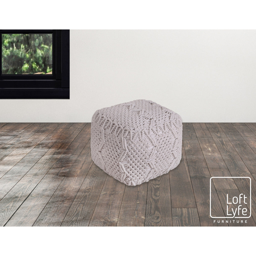 Practicality and fashion mix together with this handy 18" ivory cotton blend pouf ottoman. Add chic style to your space with this fun pouf that not only looks cool but can be a great foot rest or extra seat when needed. Expertly upholstered with padding in a soft solid color cotton blend, this ottoman is as comfortable as it is good looking. Ottomans are multi-functional additions to your space that add fashion and practical value. 14" H x 18" W x 18" D
