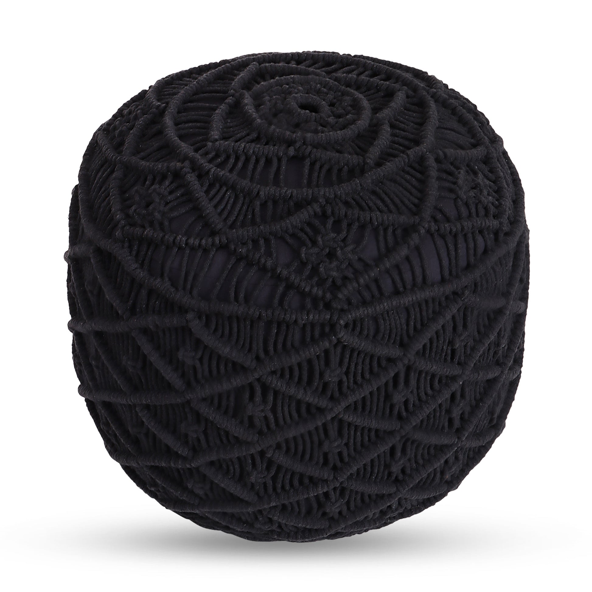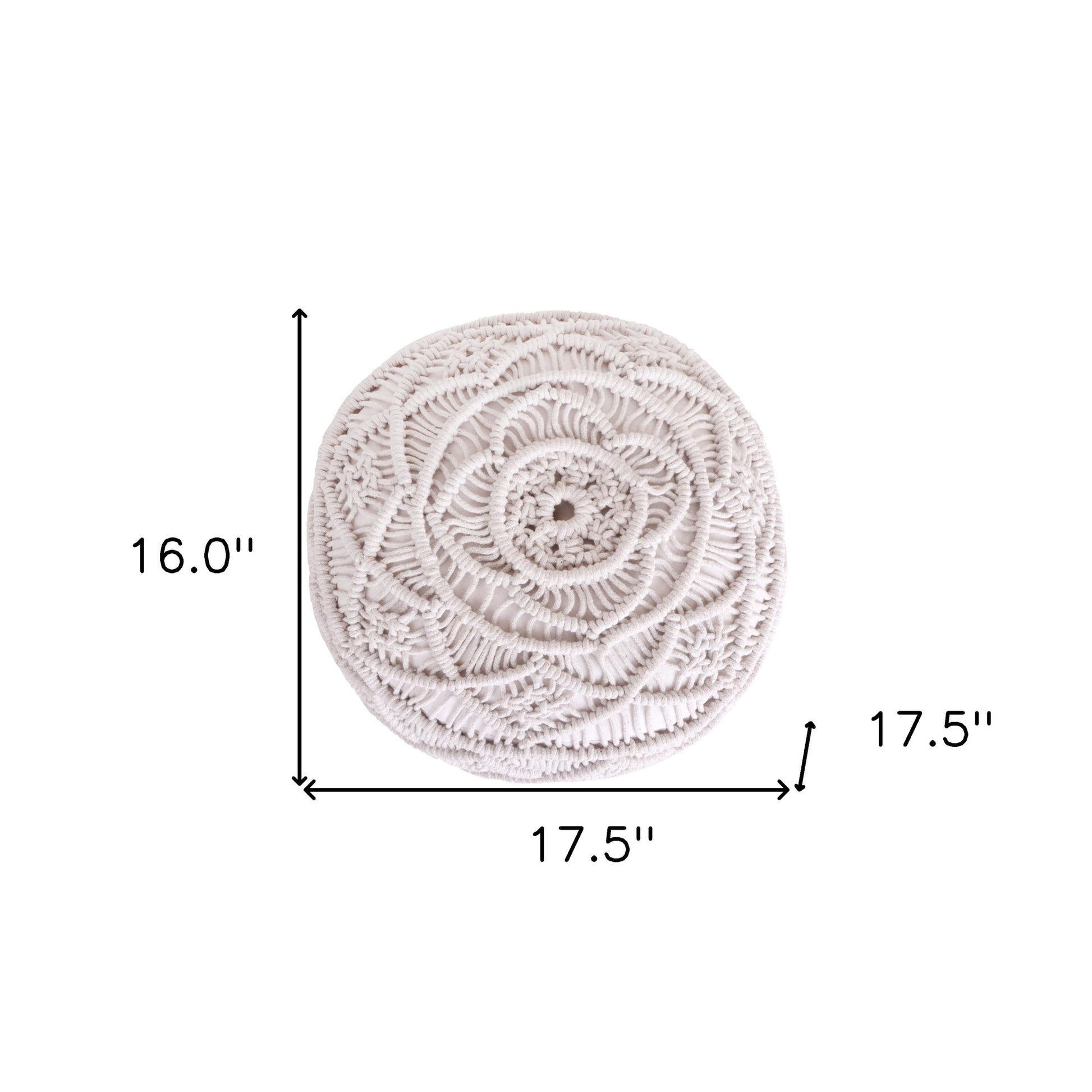 Practicality and fashion mix together with this handy 18" light gray cotton blend and brown round pouf ottoman. Add chic style to your space with this fun pouf that not only looks cool but can be a great foot rest or extra seat when needed. Expertly upholstered with padding in a soft solid color cotton blend, this ottoman is as comfortable as it is good looking. Easy to blend into most any room, a ottoman is a way to add a good looking accent to your space that can also be practical and useful. . 16" H x 17.5" W x 17.5" D
