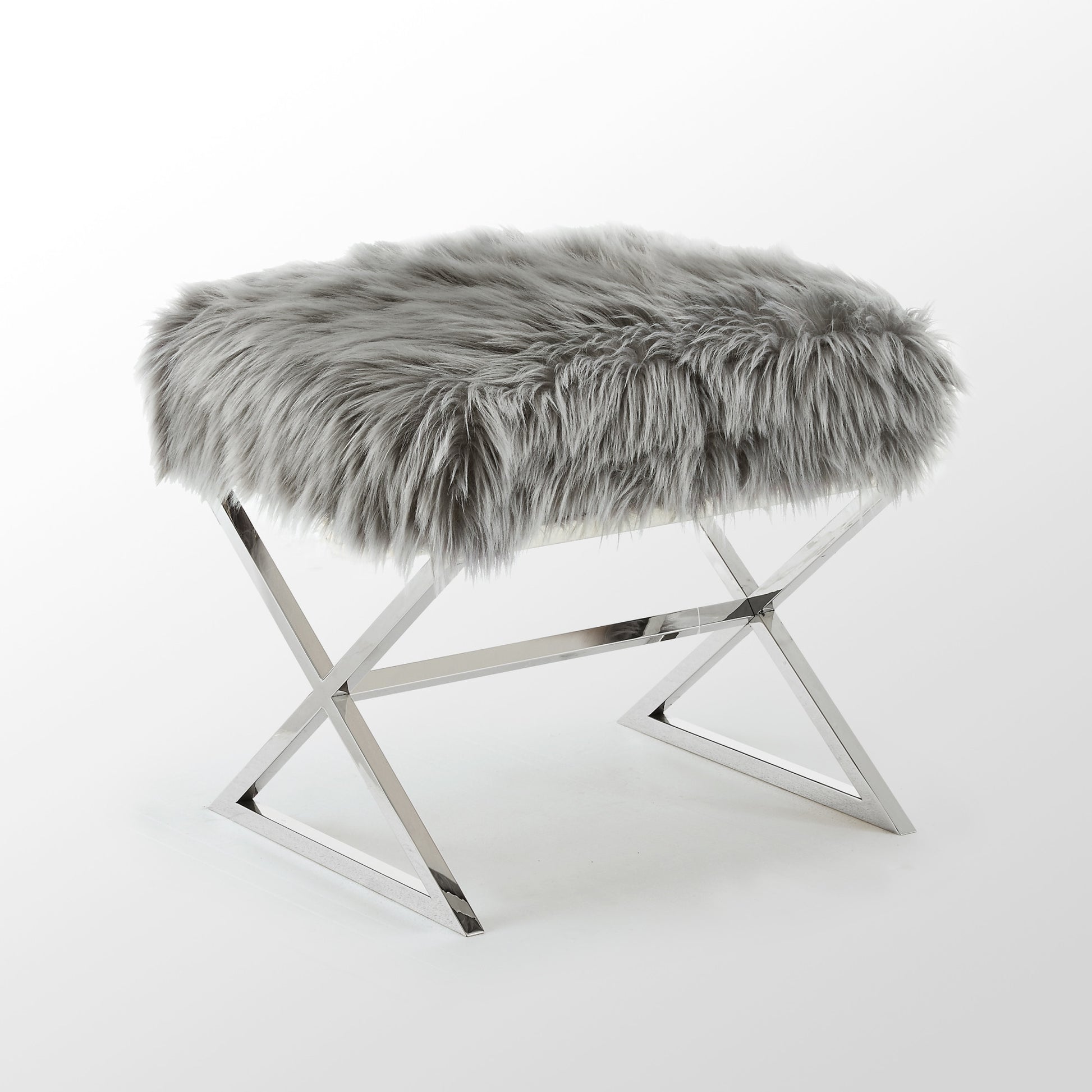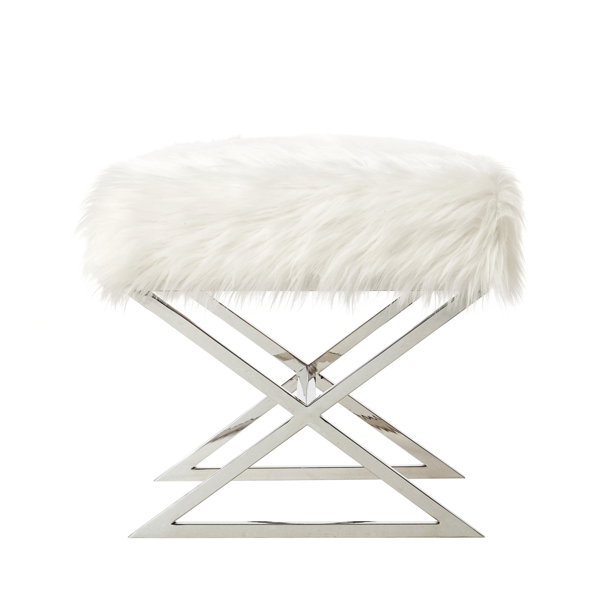 Get ready to relax with this 18" navy blue velvet and silver ottoman. The navy blue upholstery top of this ottoman is a nice contrast to the high quality, silver metal of the base. Expertly upholstered with padding in a soft solid color velvet, this ottoman is as comfortable as it is good looking. Easy to blend into most any room, a ottoman is a way to add a good looking accent to your space that can also be practical and useful. . 18" H x 18" W x 18" D