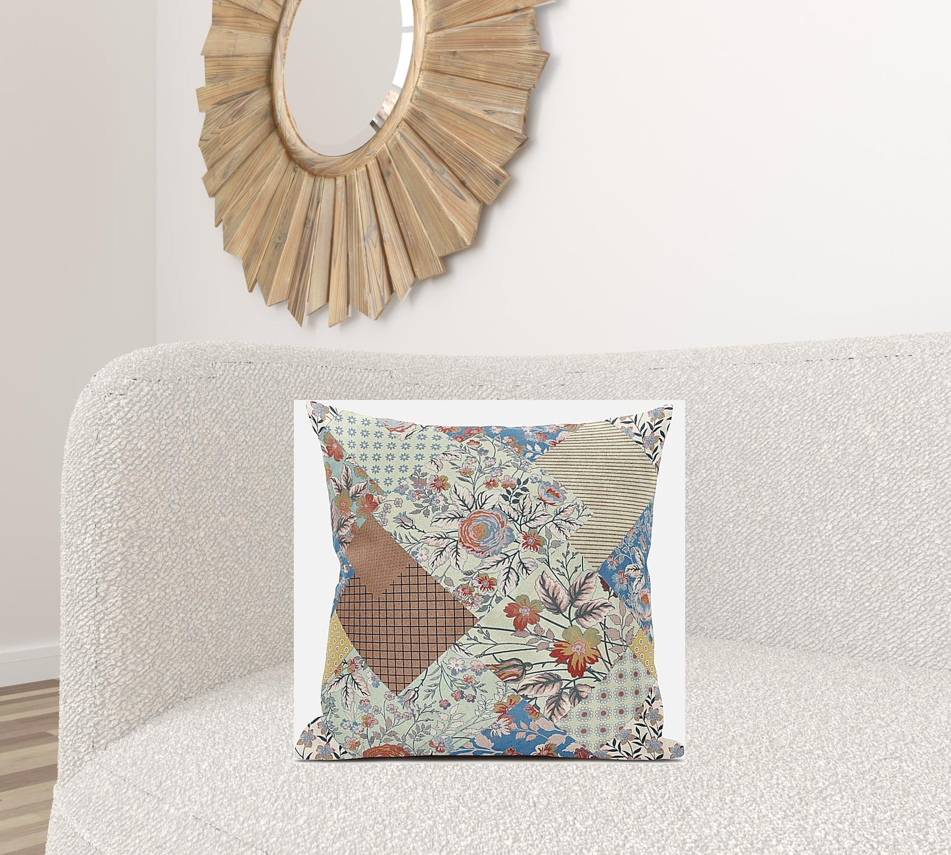 Anchor your living space with warmth and bliss as you bring home this stunning Orange Yellow Floral Suede Throw Pillow. The exquisite patches of floral prints and geometric patterns in muted shades of orange, yellow, white, and blue create an alluring composition of colors to enhance any modern or bohemian home. Crafted in the United States, the delicate drape in suede fabric not only gives this pillow a luxuriously smooth finish with a lustrous appearance but also ensures durability to last for a long time while being easy to maintain. This pillow is blown and filled with a soft polyfill insert for a plush and fluffy look, making it an excellent accent of comfort when placed on the sofa, chair, or bed. Balancing between warm and cool-toned hues, this decorative throw pillow will seamlessly blend in with a variety of interior settings. 18” x 18” x 5”