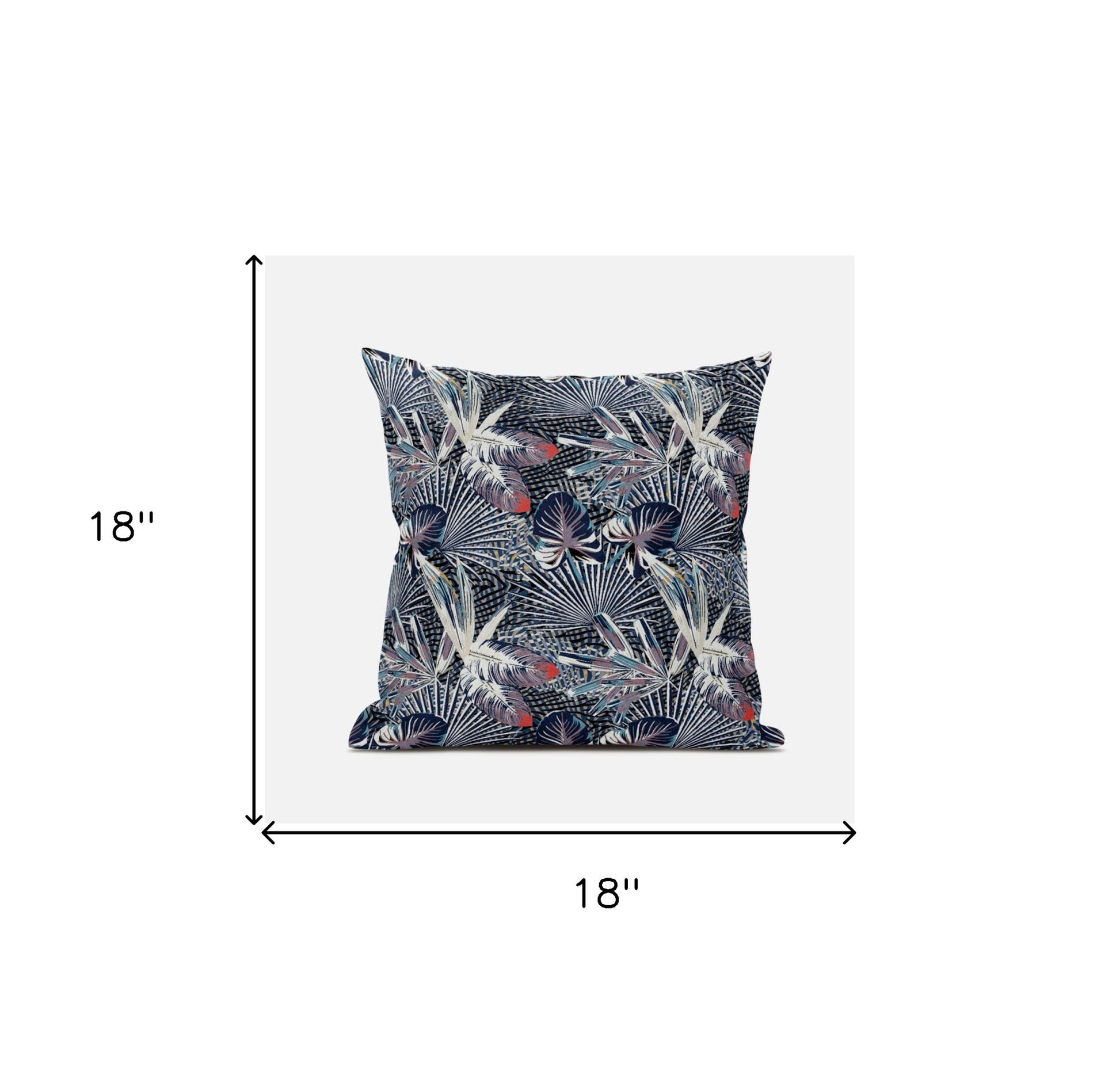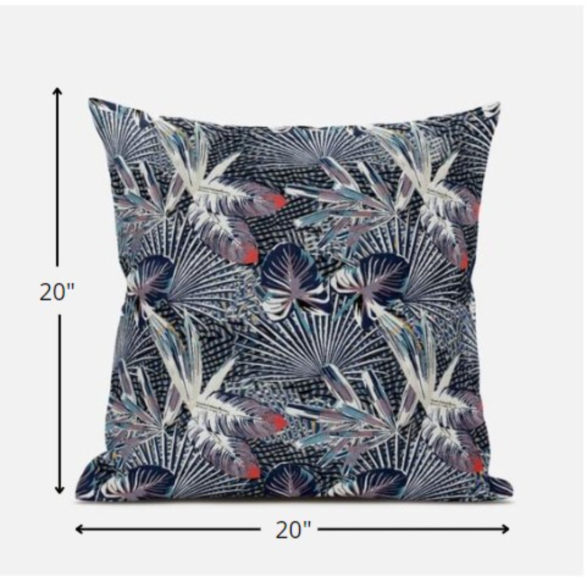 Balancing botanical elements with a bold color palette, this stunning Purple Indigo Tropical Suede Throw Pillow carries the essence of boho to layer into your coastal home. Flaunting an elaborate print of tropical leaves in a shroud of dusky purple, indigo, and white forming a canopy over an indigo-gray base, the pillow stands out as the attention-grabbing piece in any room. Crafted with the finest suede fabric, the decorative pillow is made to be eco-friendly, easy to clean, and very durable with a silky smooth surface texture. This blown and closed pillow comes with a durable polyfill insert that makes it super soft and comfortable with a luxurious fluffy look. Accentuate the coastal aesthetics in your home with the awe-inspiring print of this decorative throw pillow that can instantly transport the interior style to a tropical paradise. 18” x 18” x 5”
