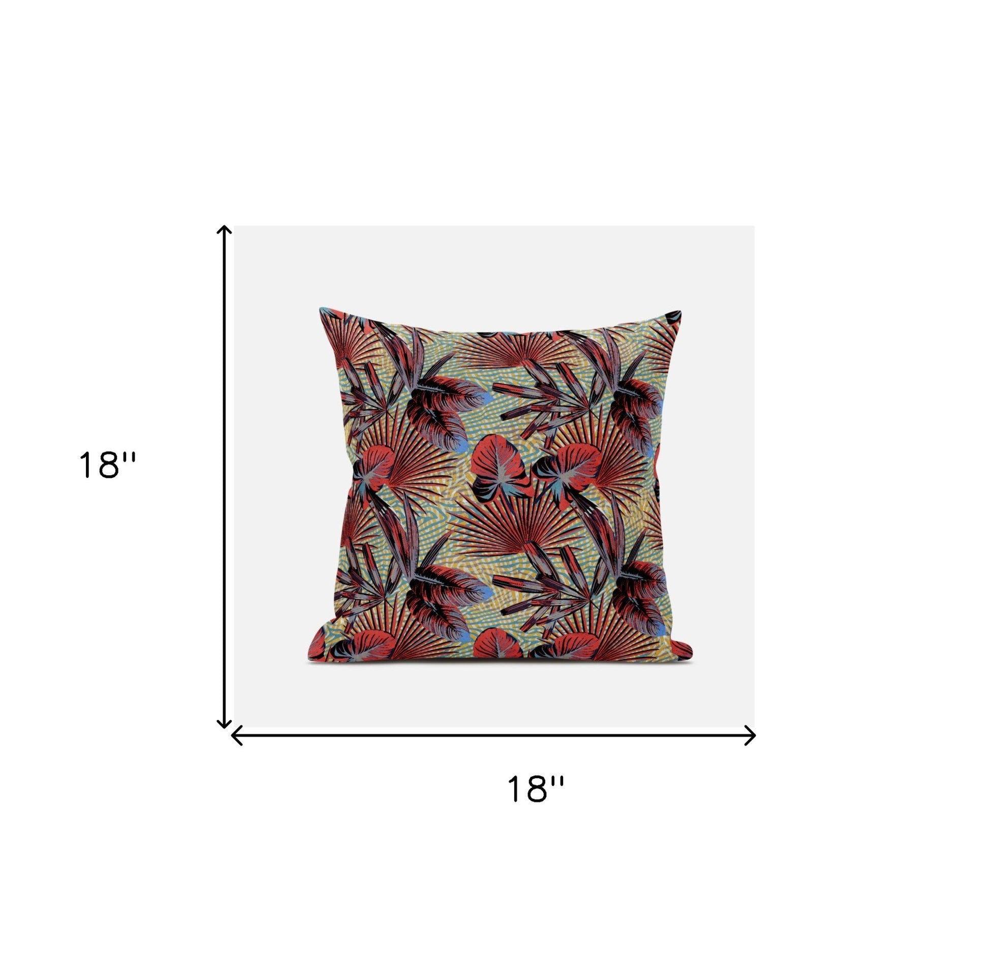 Brighten your interior space with this cheery Red Yellow Tropical Zippered Suede Throw Pillow that celebrates modern aesthetics with tropical beauty. The saturated coloration of this decorative pillow in vibrant red, yellow and blue create the illusion of a seaside sunset along with a tropical leaves to induce a relaxing vibe. Crafted from durable suede fabric which makes the pillow easy to maintain while offering a smooth finish with a luxurious sheen. Standing out in fashion and function, this pillow comes with a neatly done zipper making the cover easy to remove and clean at your convenience. The distinctive design of this pillow makes sure that it will stand out in any room and flawlessly complement any modern, tropical, or bohemian interior styled decor. 18” x 18” x 5”