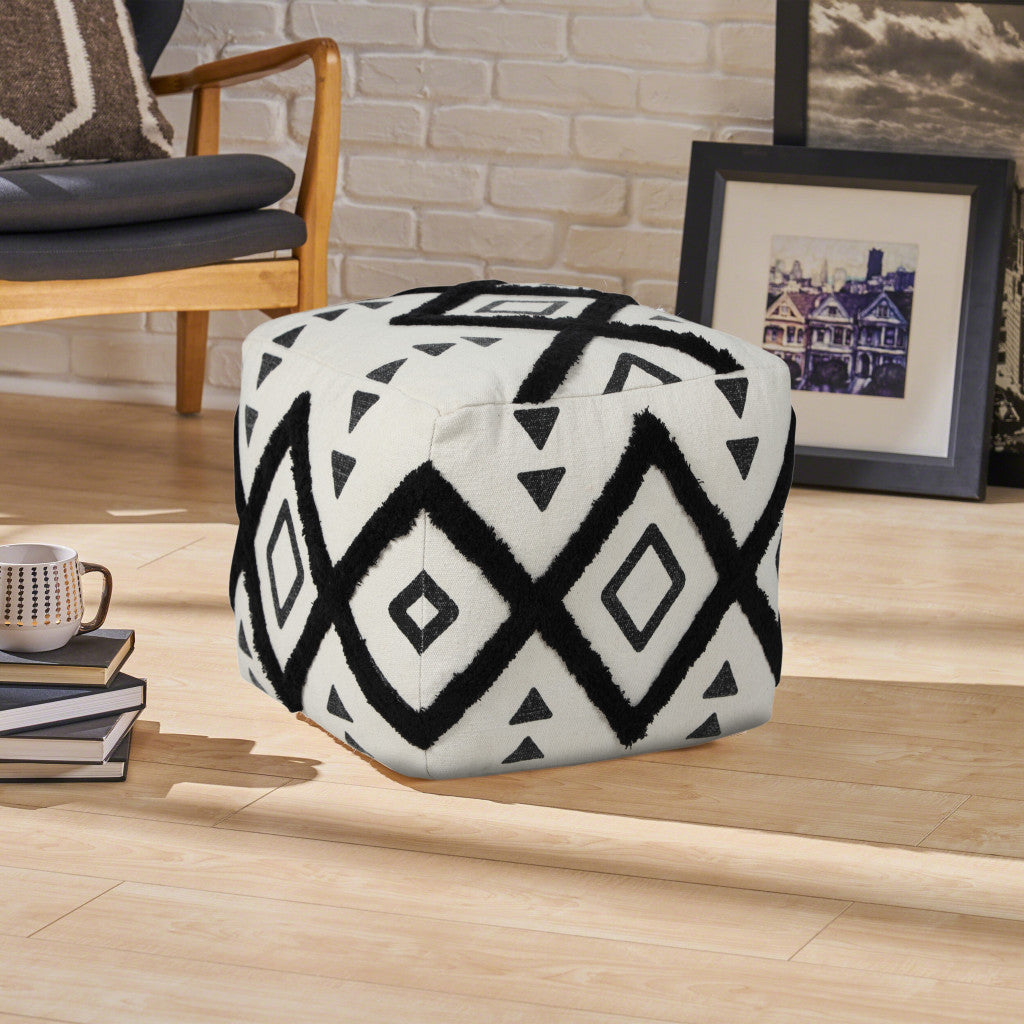 Practicality and fashion mix together with this handy 18-inch white 100% cotton ottoman. Easy to blend into most any room, a ottoman is a way to add a good looking accent to your space that can also be practical and useful. . 14-inch H x 18-inch W x 18-inch D