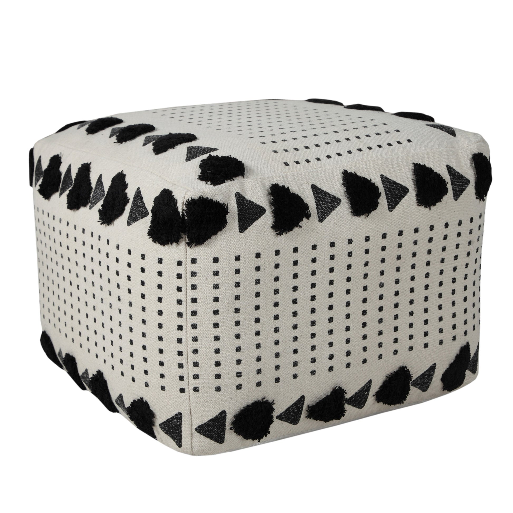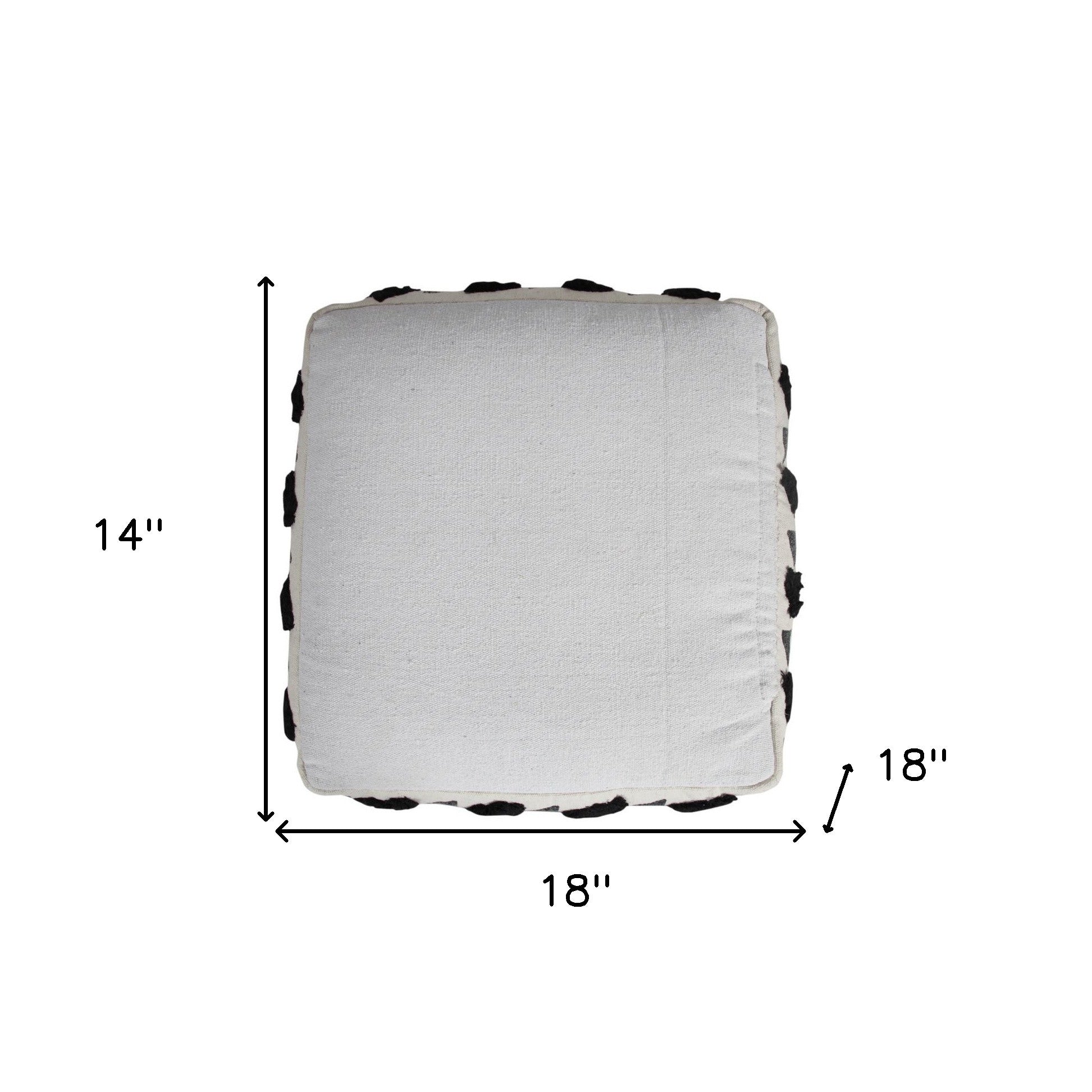 Practicality and fashion mix together with this handy 18-inch white 100% cotton ottoman. Easy to blend into most any room, a ottoman is a way to add a good looking accent to your space that can also be practical and useful. . 14-inch H x 18-inch W x 18-inch D