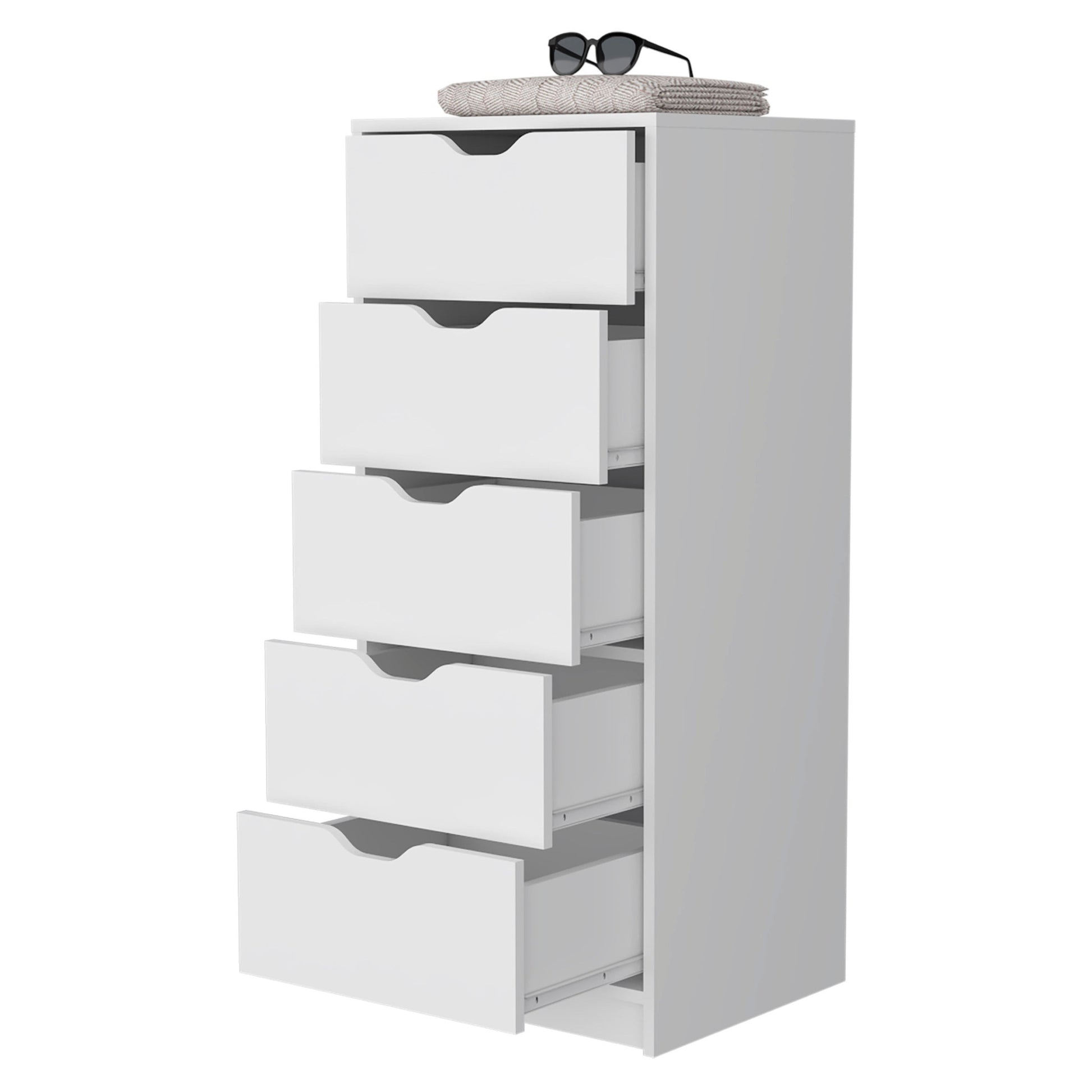 18" White Manufactured Wood Five Drawer Narrow Dresser