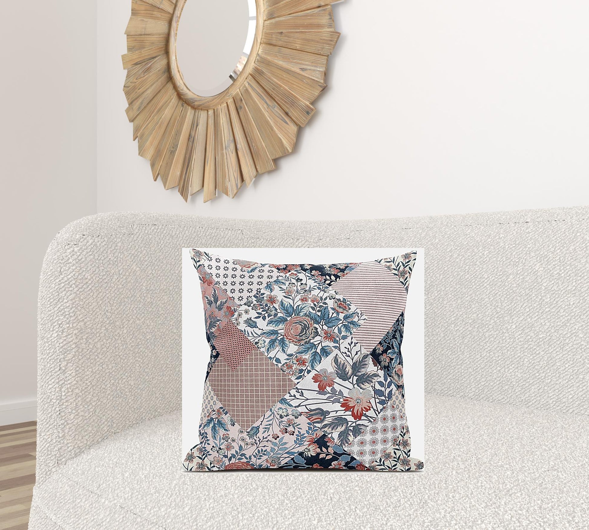 Accentuate a bohemian aesthetic into your home with this White Pink Floral Suede Throw Pillow that exhibits a subtle yet eye-catching composition to anchor your living space. The high-quality floral and geometric digital prints in light peachy pink and slate blue create a pleasant contrast over the white base, making this an ideal accent for a wide variety of interior settings. Crafted in the United States with premium suede fabric for softness and durability. The glossy sheen and luxurious texture of the suede offer a smooth and luxurious finish for ultimate style and comfort. This pillow is blown and closed with a high-quality polyfill insert for a plush appearance with extra fluffiness. Whether you want this throw pillow in your bedroom, living room, or sitting space, it will seamlessly blend in without overwhelming its surrounding. 18” x 18” x 5”