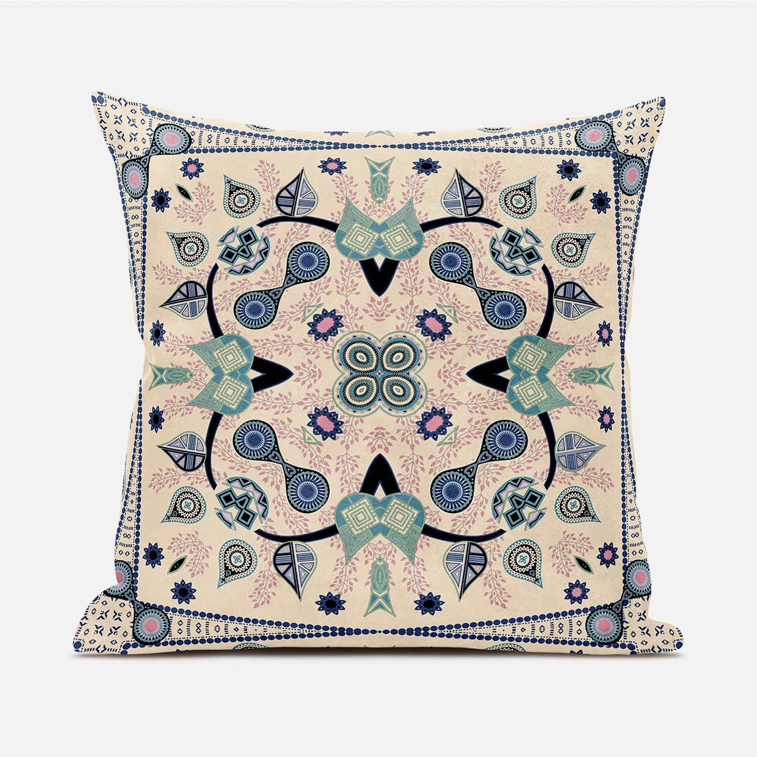 18" X 18" Beige and Black Broadcloth Paisley Zippered Pillow