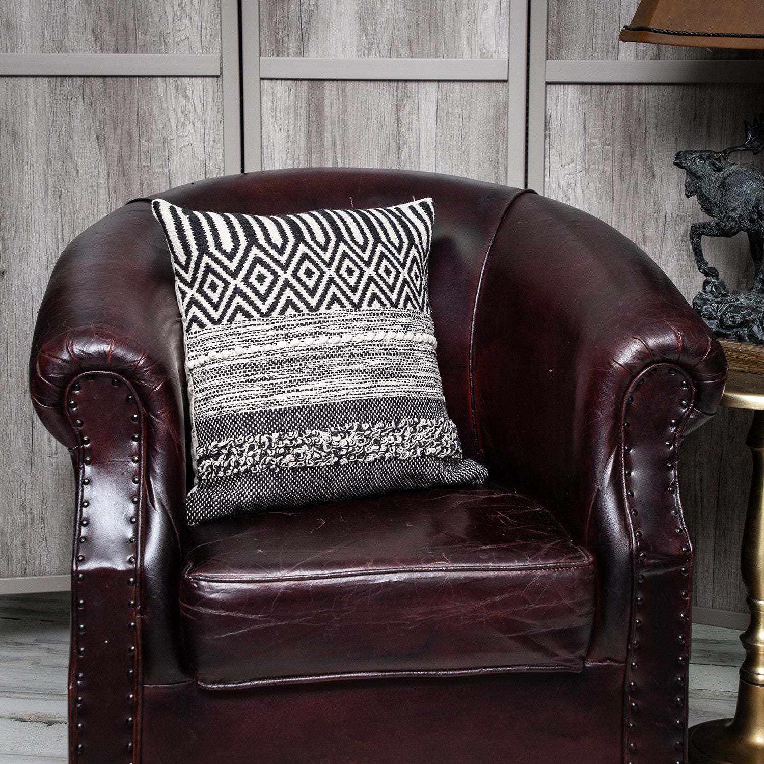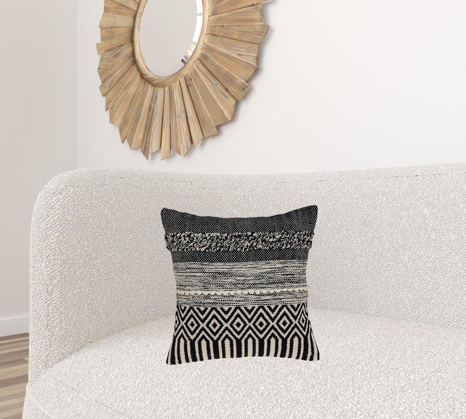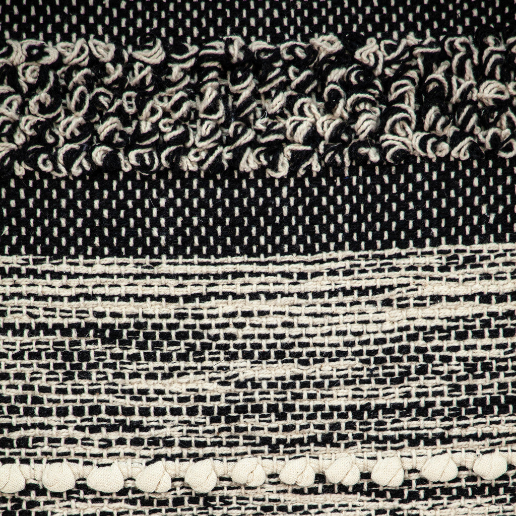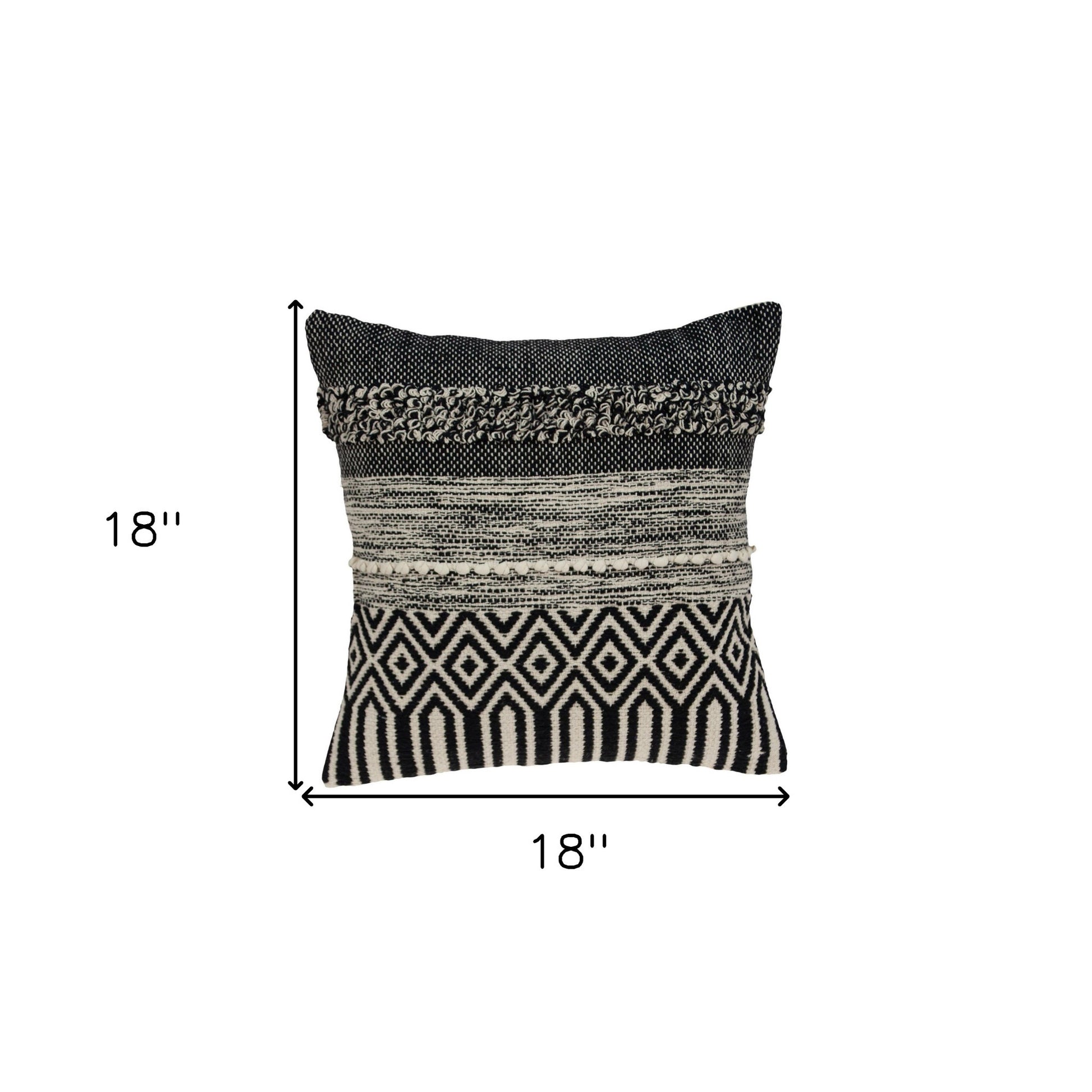 Unique and decorative, this comfortable 18" x 18" beige and black zippered 100% cotton throw pillow with embroidery will leave a lasting impression. Decorative throw pillows not only add color and dimension to your space but can be comfy and supportive when you are lounging and cuddling as well. A great decorative accessory for your favorite chair, to accent your sofa, or to use as part of your bed ensemble. 6" H x 18" W x 18" D