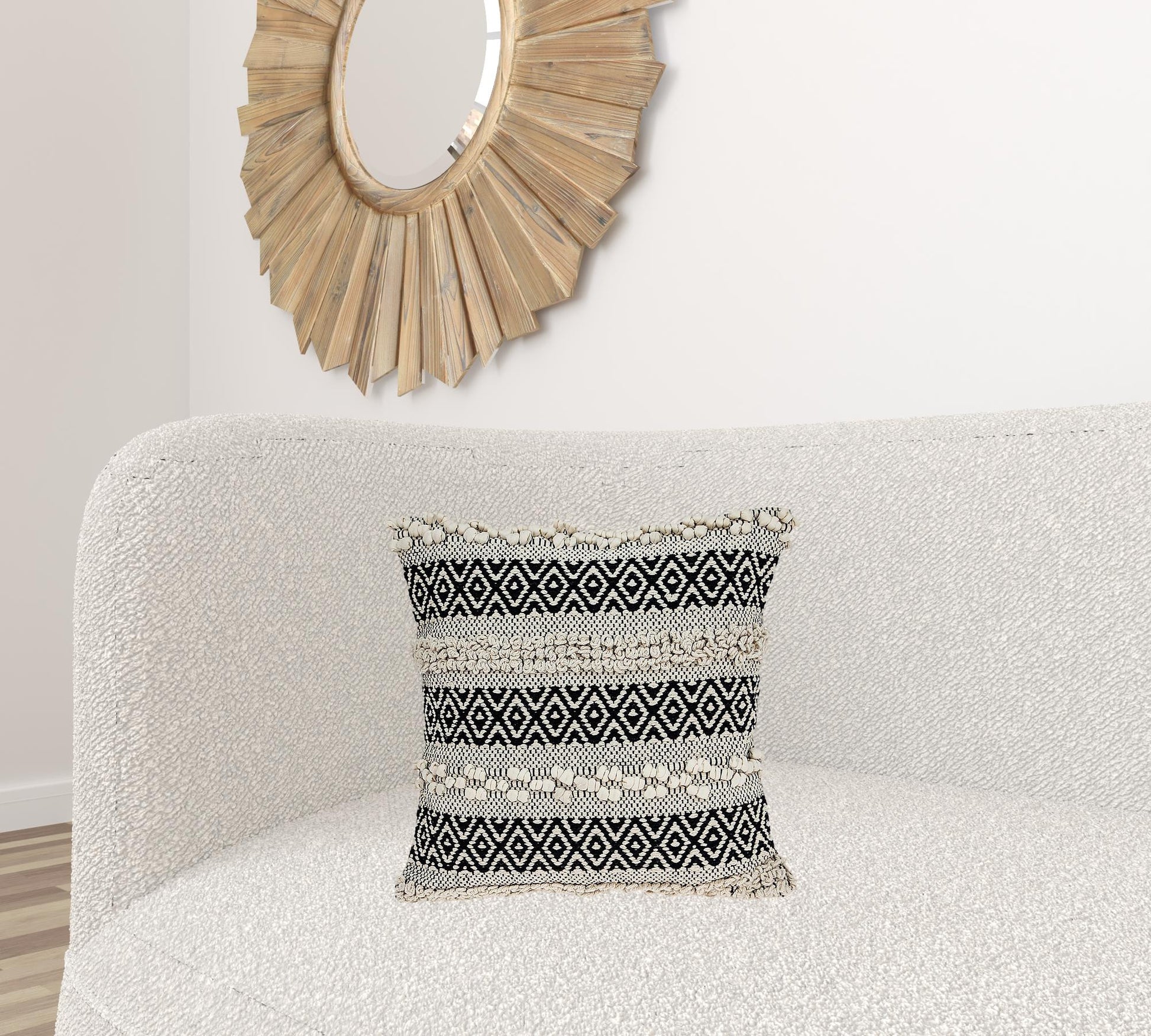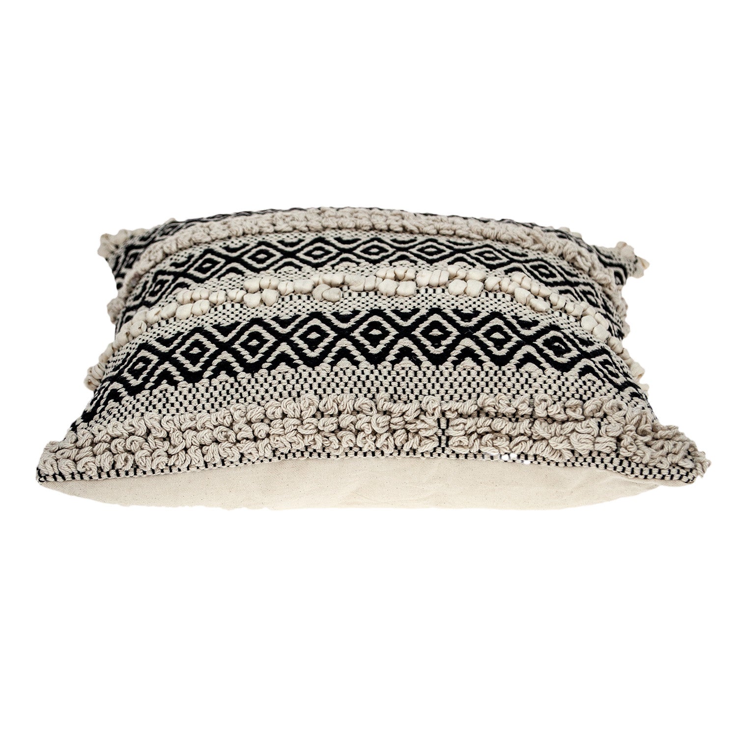 Unique and decorative, this comfortable 18" x 18" beige and black zippered 100% cotton throw pillow with embroidery will leave a lasting impression. Decorative throw pillows not only add color and dimension to your space but can be comfy and supportive when you are lounging and cuddling as well. Decorative pillows are a great way to change up the look and feel of your space easily and quickly. 6" H x 18" W x 18" D