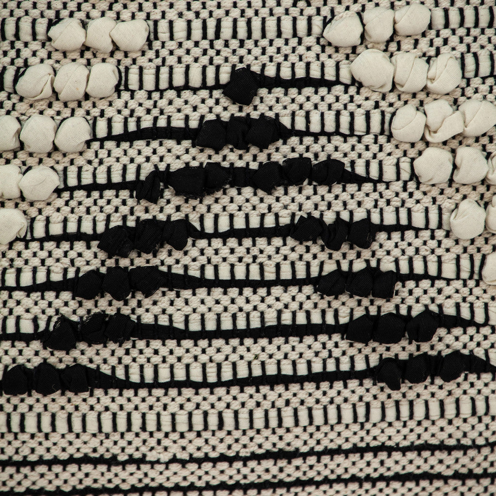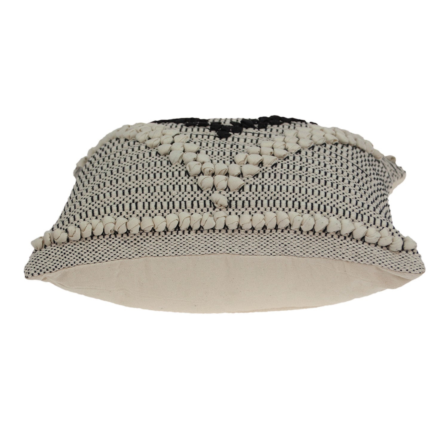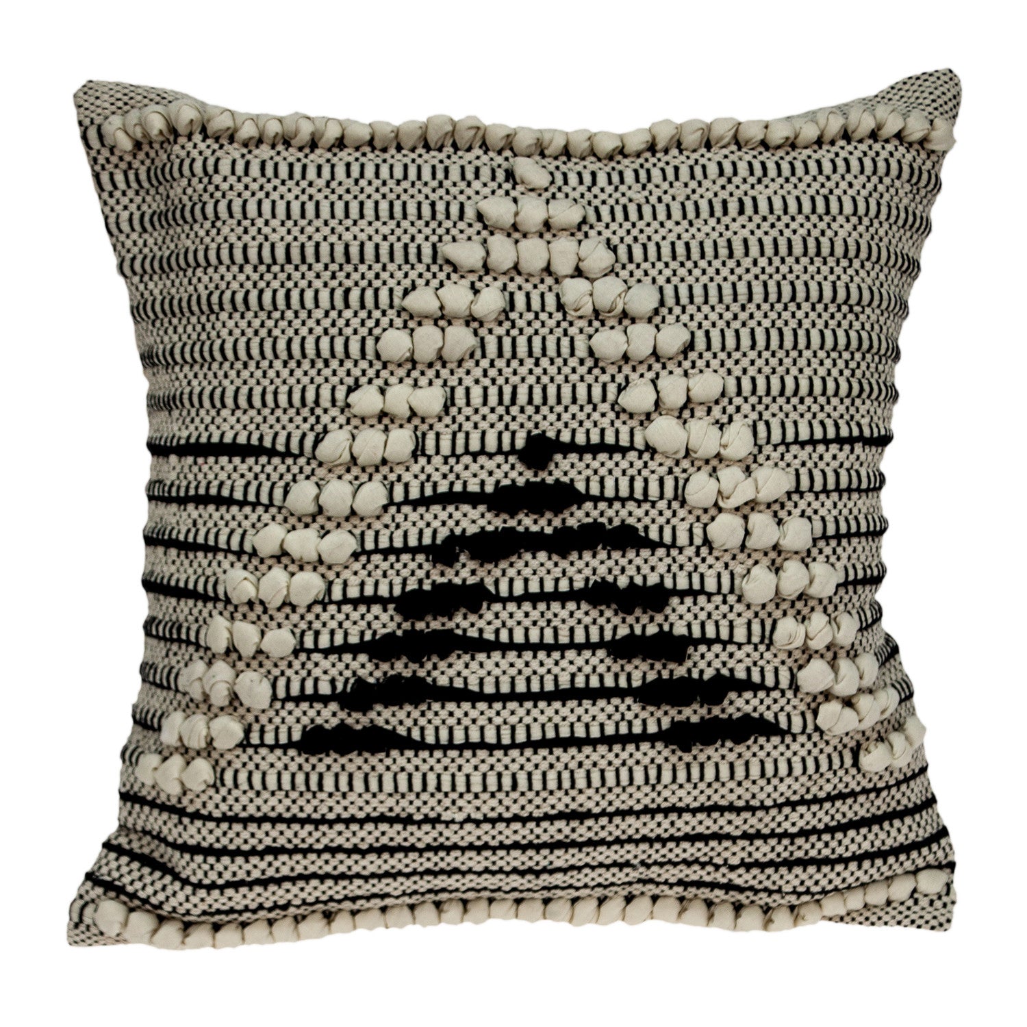 The perfect complement to your sofa, favorite chair, or bed, this 18" x 18" beige and black zippered 100% cotton throw pillow with embroidery is a great decorative accent. Great to use on its own or mix with other decorations for the perfect look. Decorative pillows are a great way to change up the look and feel of your space easily and quickly. 6" H x 18" W x 18" D