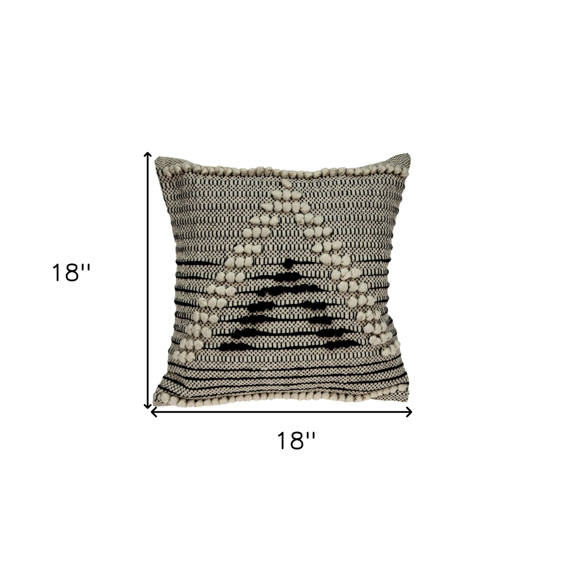 18" X 18" Beige And Black Zippered 100% Cotton Throw Pillow With Embroidery