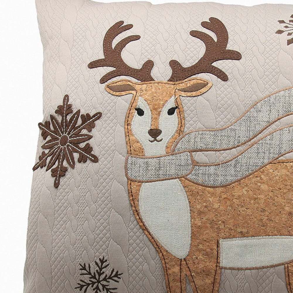 18" X 18" Beige and Brown Deer Christmas Reindeer Polyester Zippered Pillow