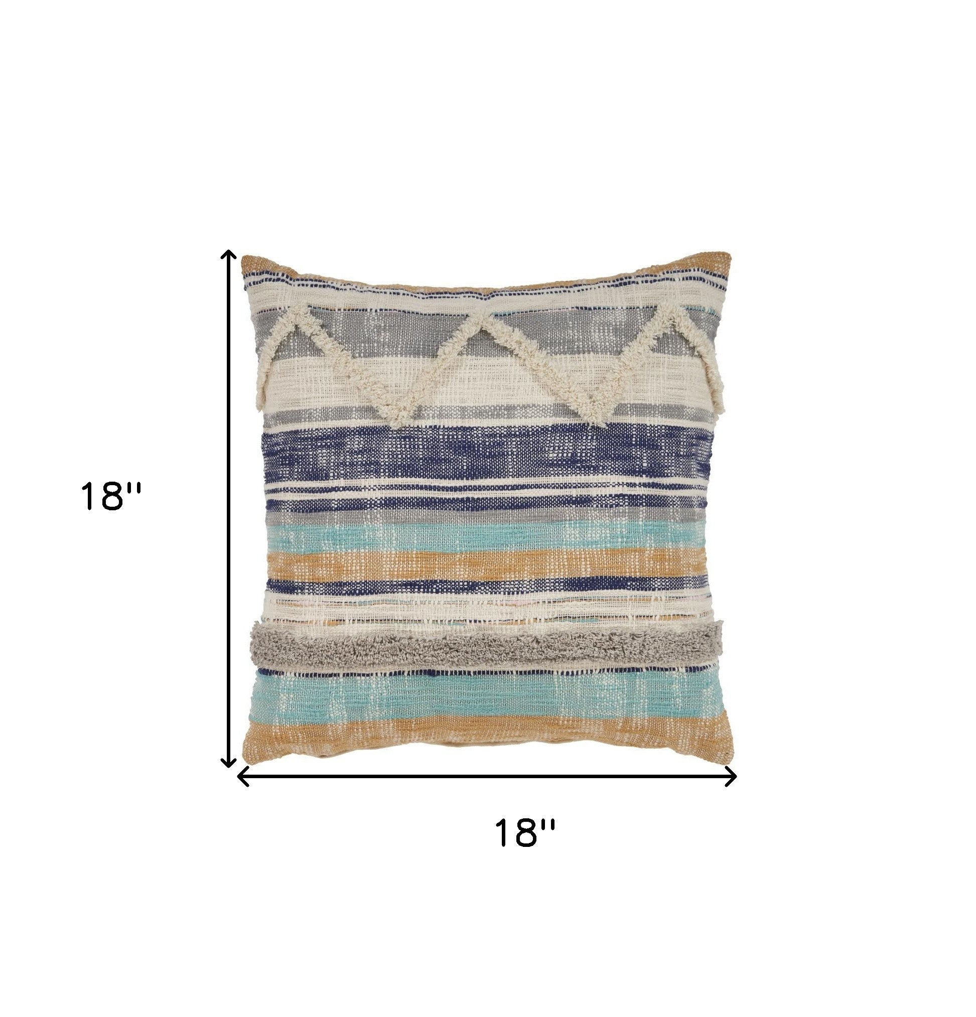 18" X 18" Beige Blue and Gray Geometric Cotton Zippered Pillow