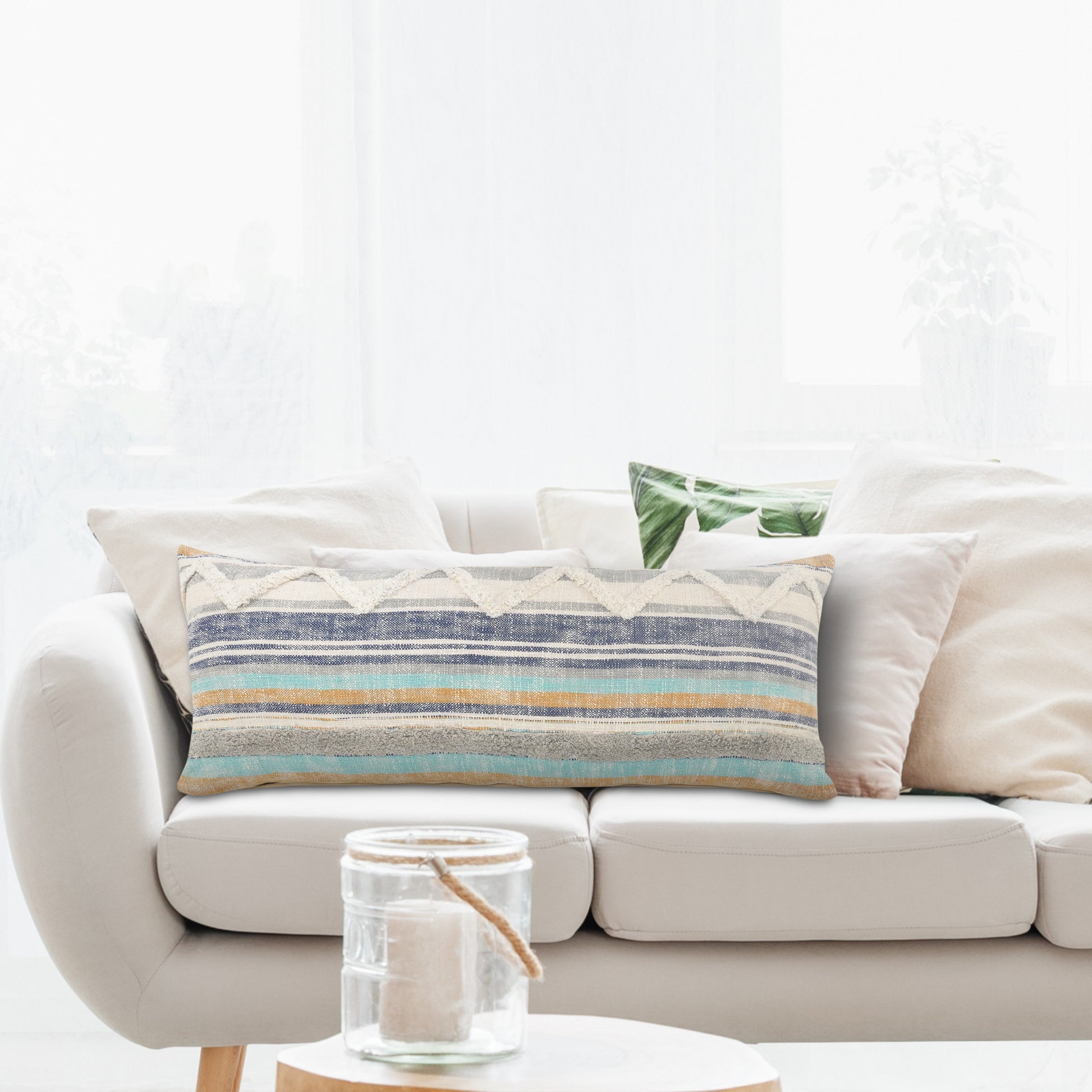 Keywords | gray cotton geometric zippered pillow, cotton geometric zippered pillow, geometric zippered pillow, 18" X 18" beige blue gray cotton, blue gray cotton geometric zippered |
