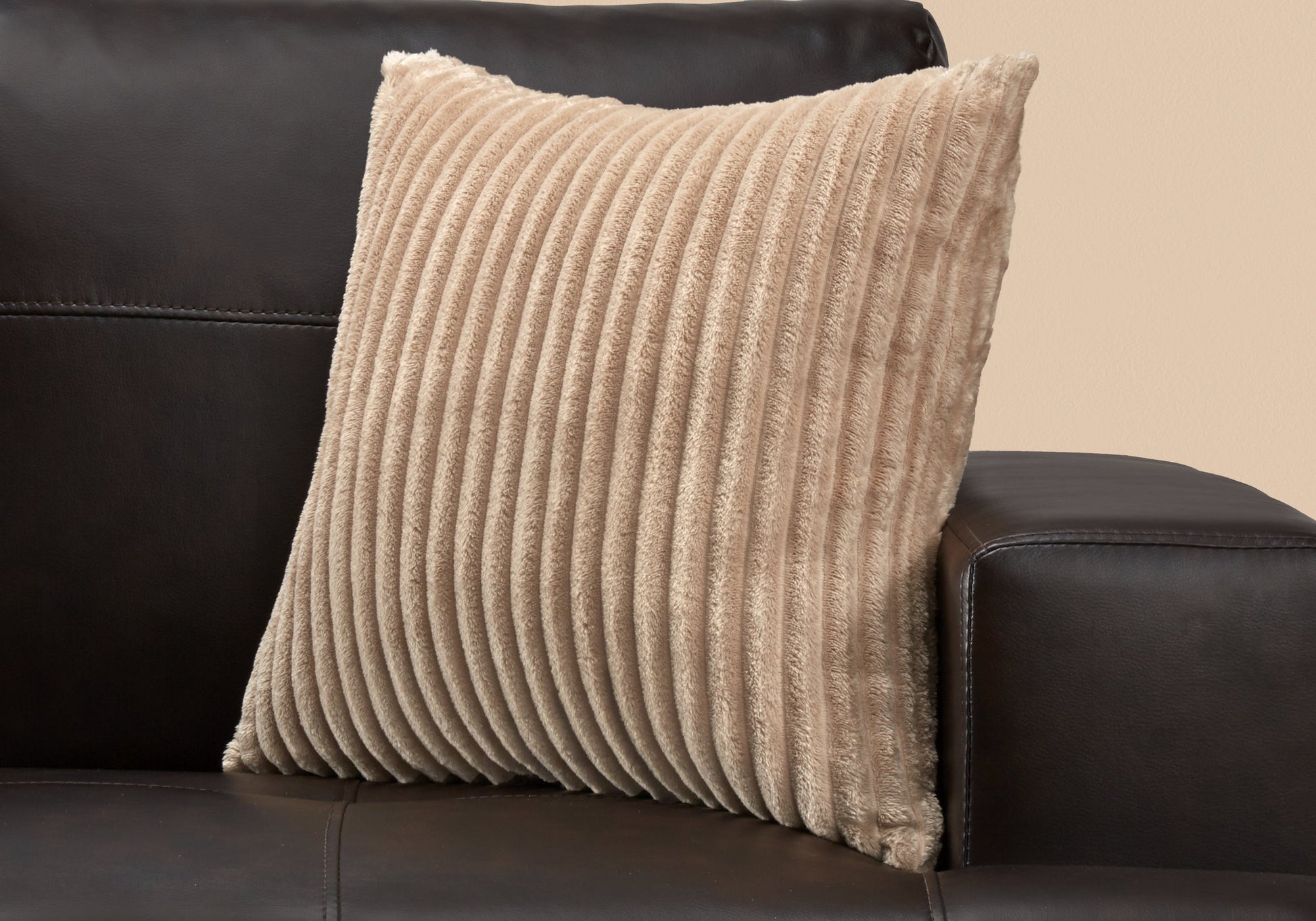 18" X 18" Beige Polyester Ribbed Zippered Pillow