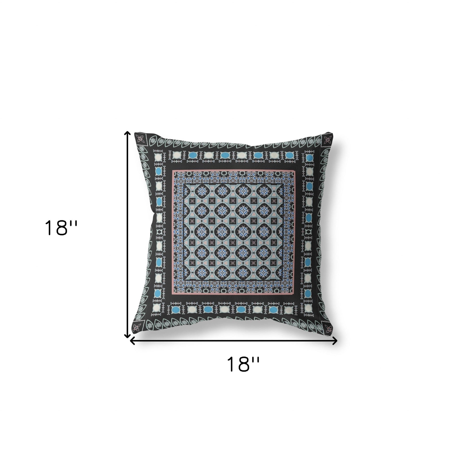 18" X 18" Black And Blue Floral Blown Seam Suede Throw Pillow