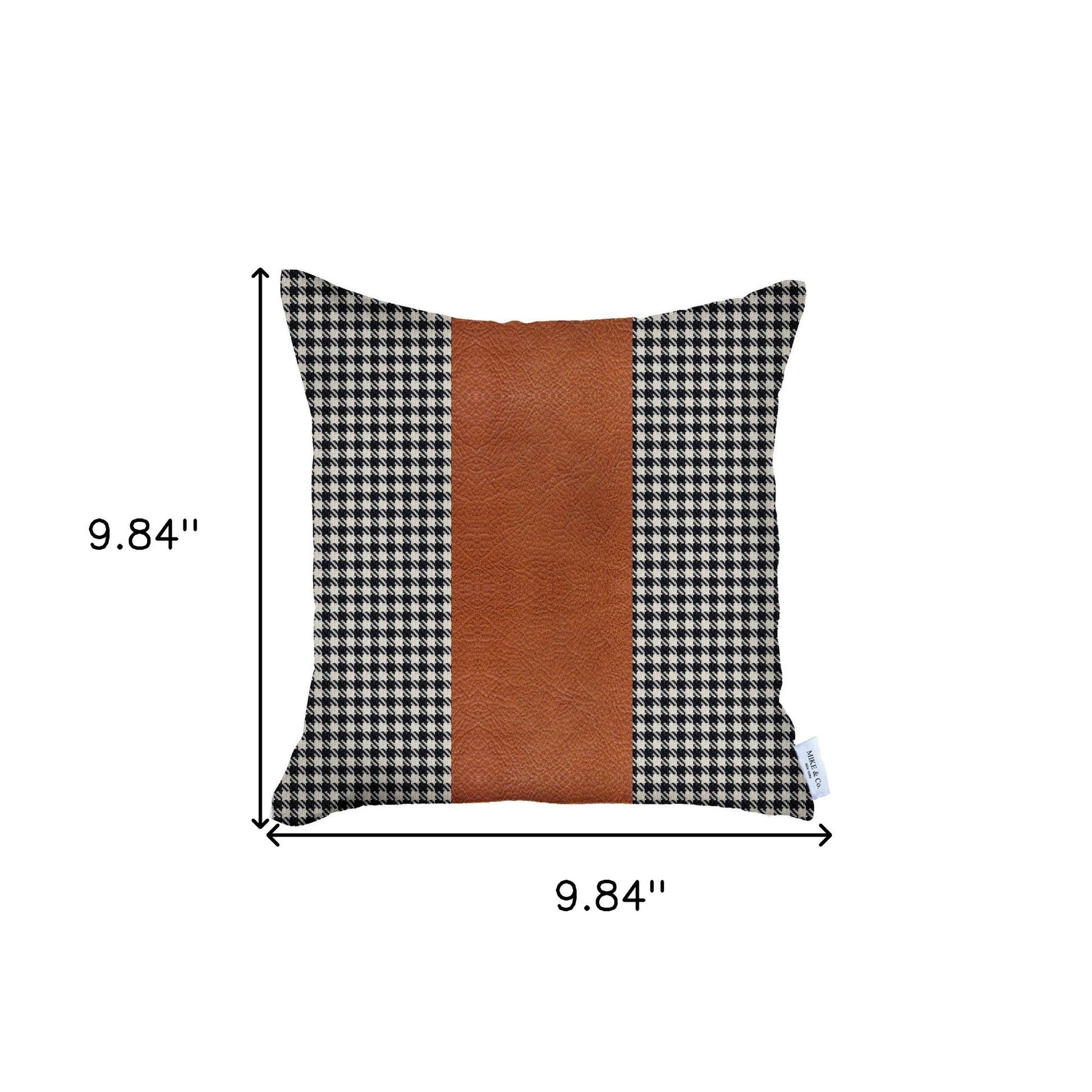 18" X 18" Black And Brown Houndstooth Zippered Handmade Polyester Throw Pillow Cover